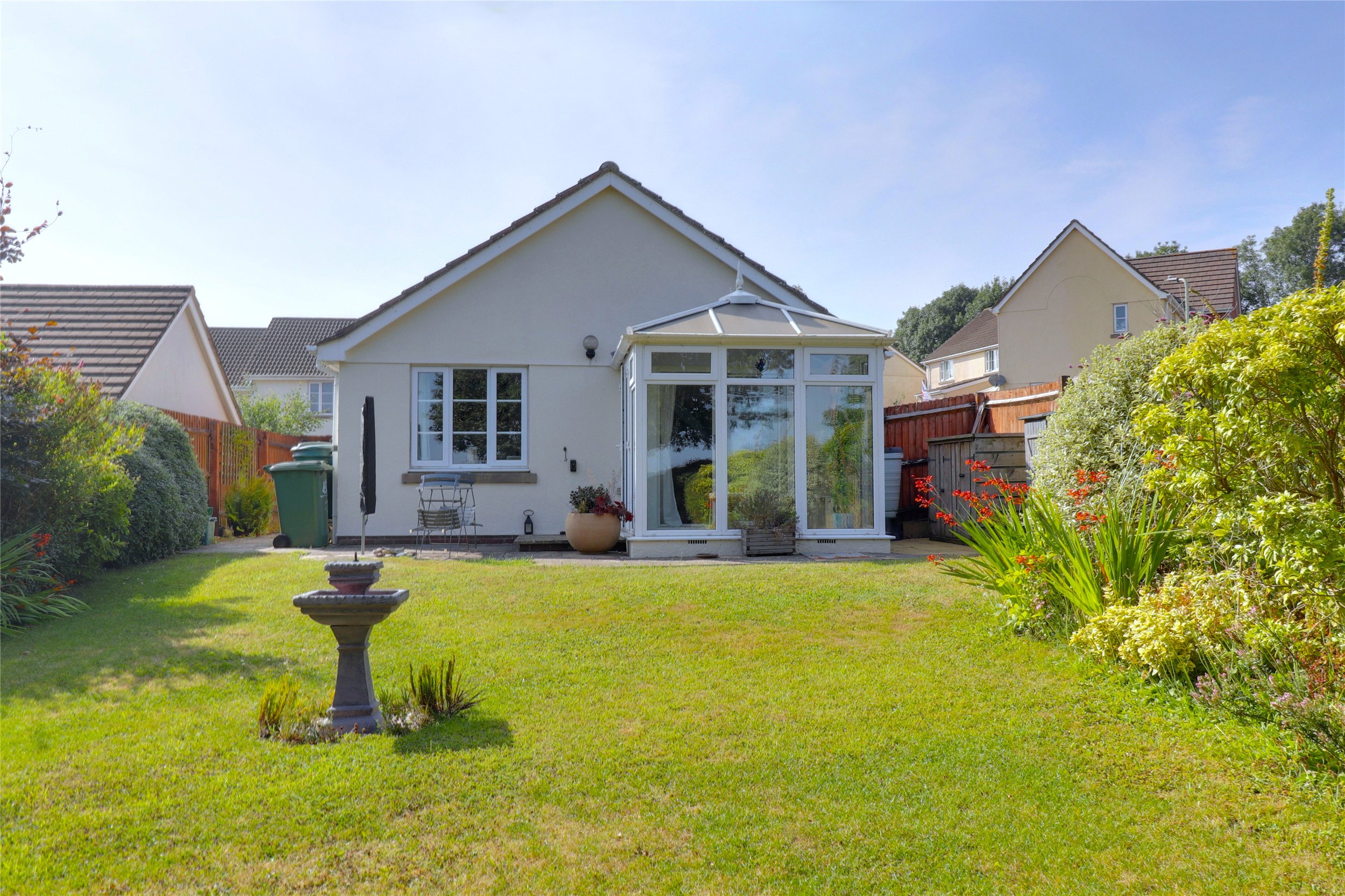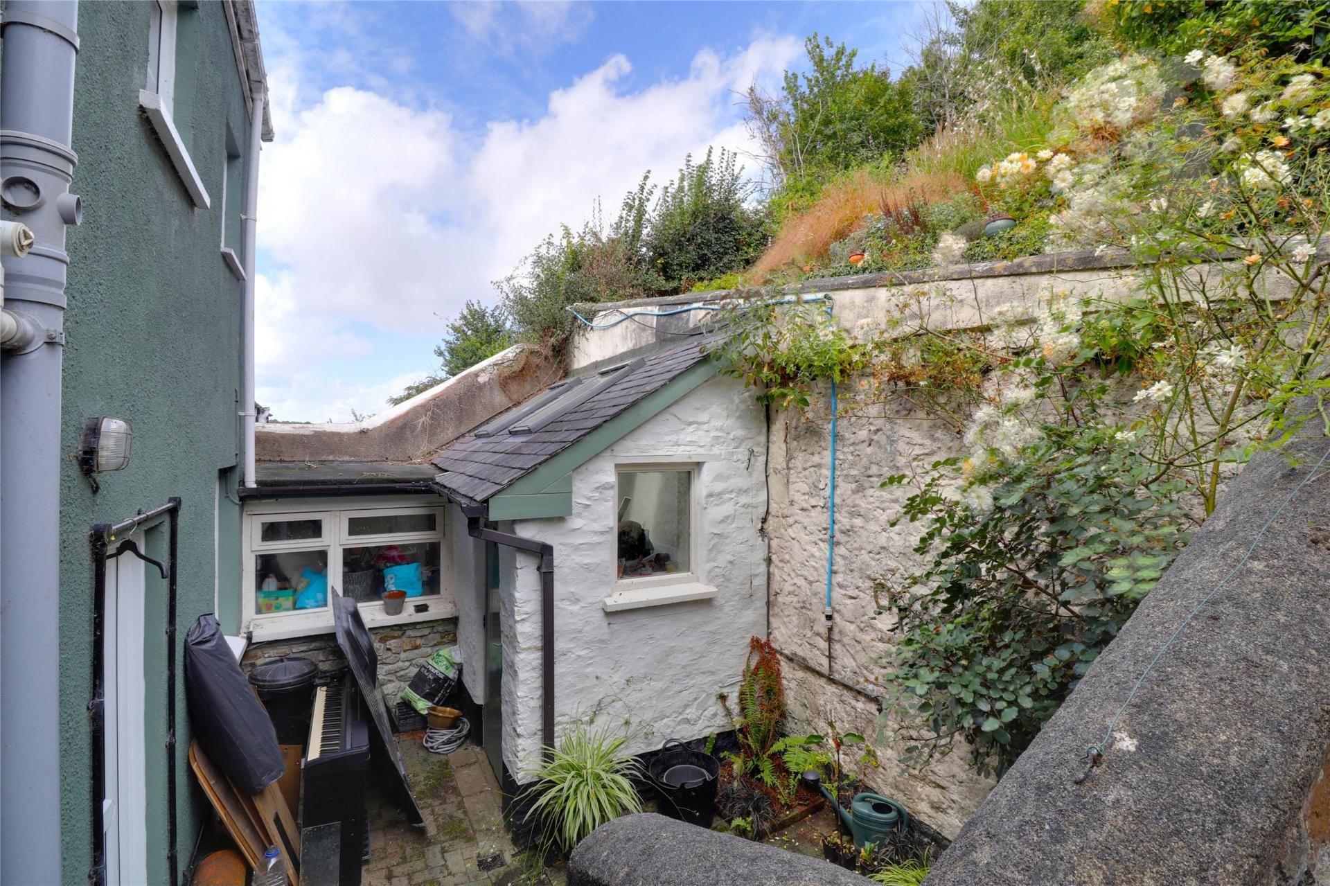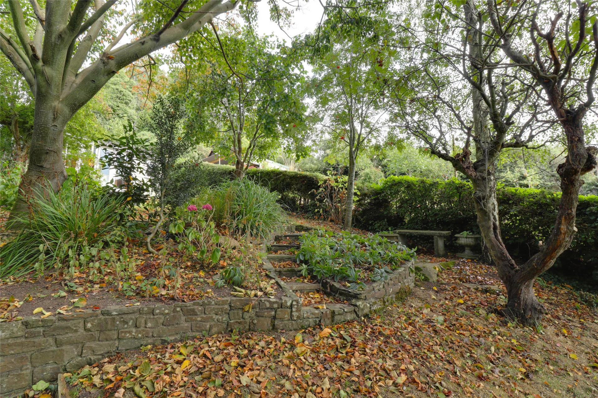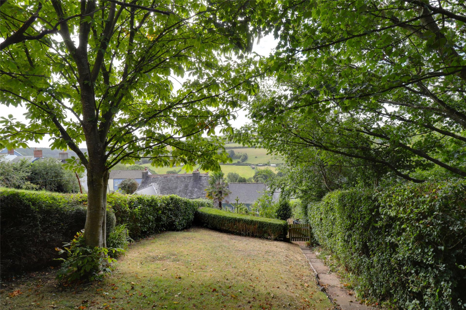 The rear garden is a real standout, arranged over several tiers that climb gently up the hillside. The first level is a low-maintenance walled garden, followed by a sun-soaked patio area which is ideal for relaxing. Beyond that lies a lawn with beautiful views over the Torridge Valley and Commons, and at the very top, a peaceful landscaped area with mature planting.