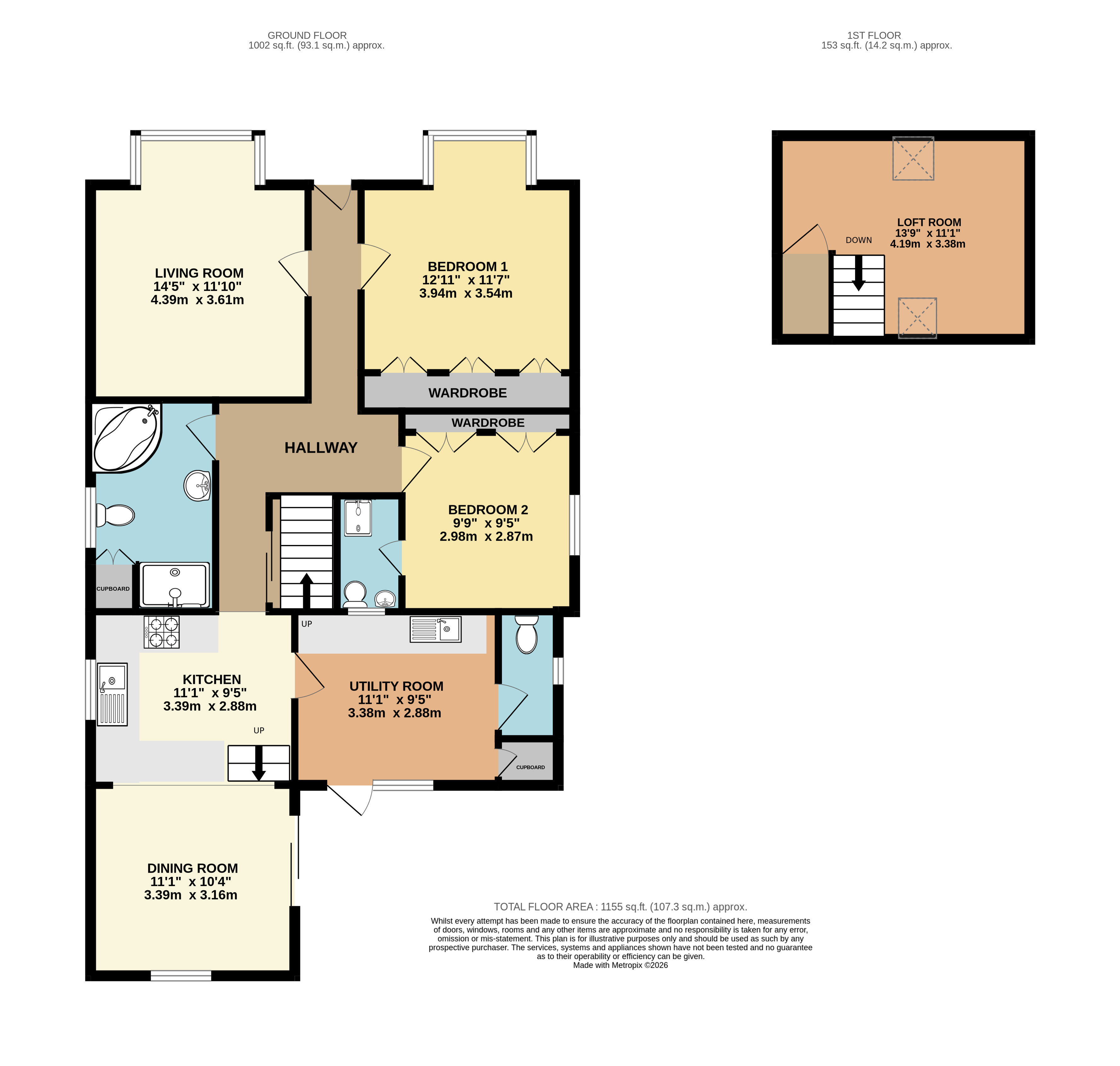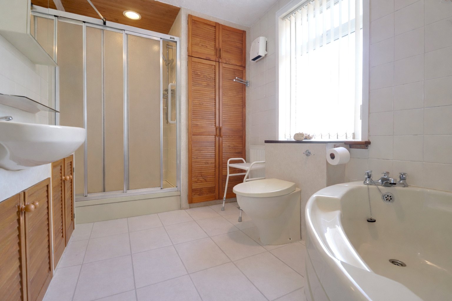 The main bathroom is particularly spacious and well arranged, fitted with both a panelled bath and a large enclosed shower, together with a wash hand basin and WC.