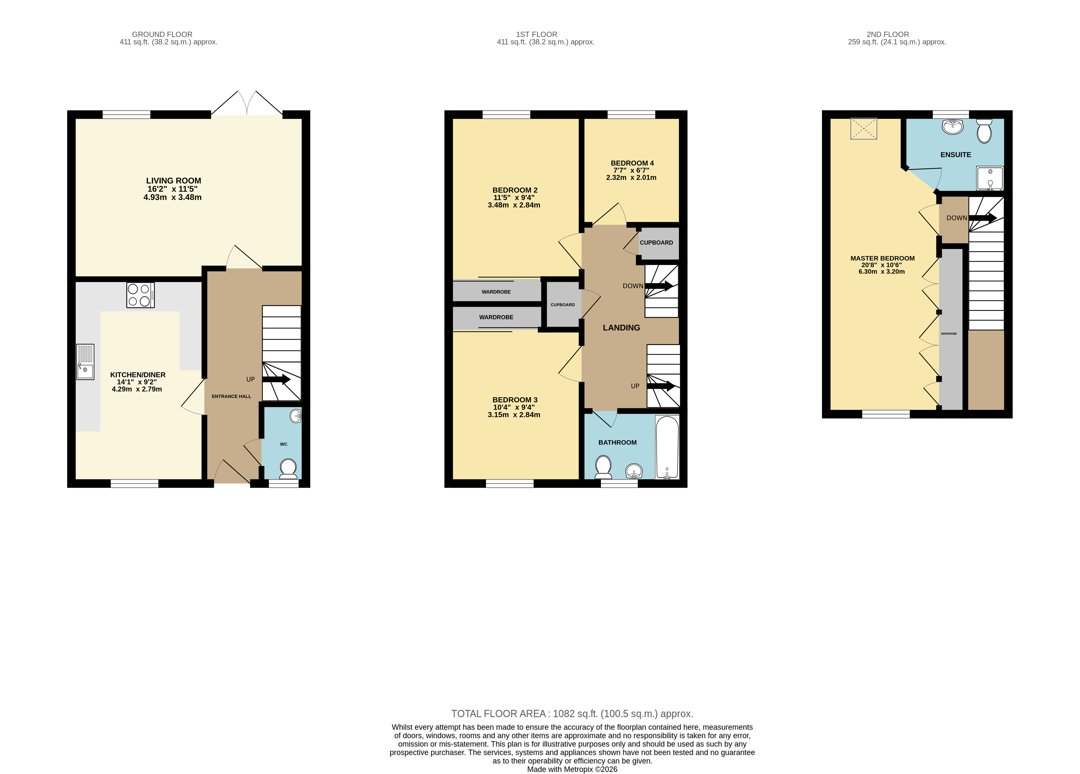 Stairs rise to the first floor where you will find bedroom two and three which are generous sized doubles and both benefit from built in wardrobes whilst bedroom four offers a versatile space that would be suitable for a home office or nursery. The family bathroom is found on this floor and consists of a modern three-piece suite. Another flight of stairs ascend to the second floor and the real high light of this home. Here lies the expansive master bedroom benefitting its own shower en-suite room and ample fitted wardrobes allowing this room to be the perfect retreat after a long day.