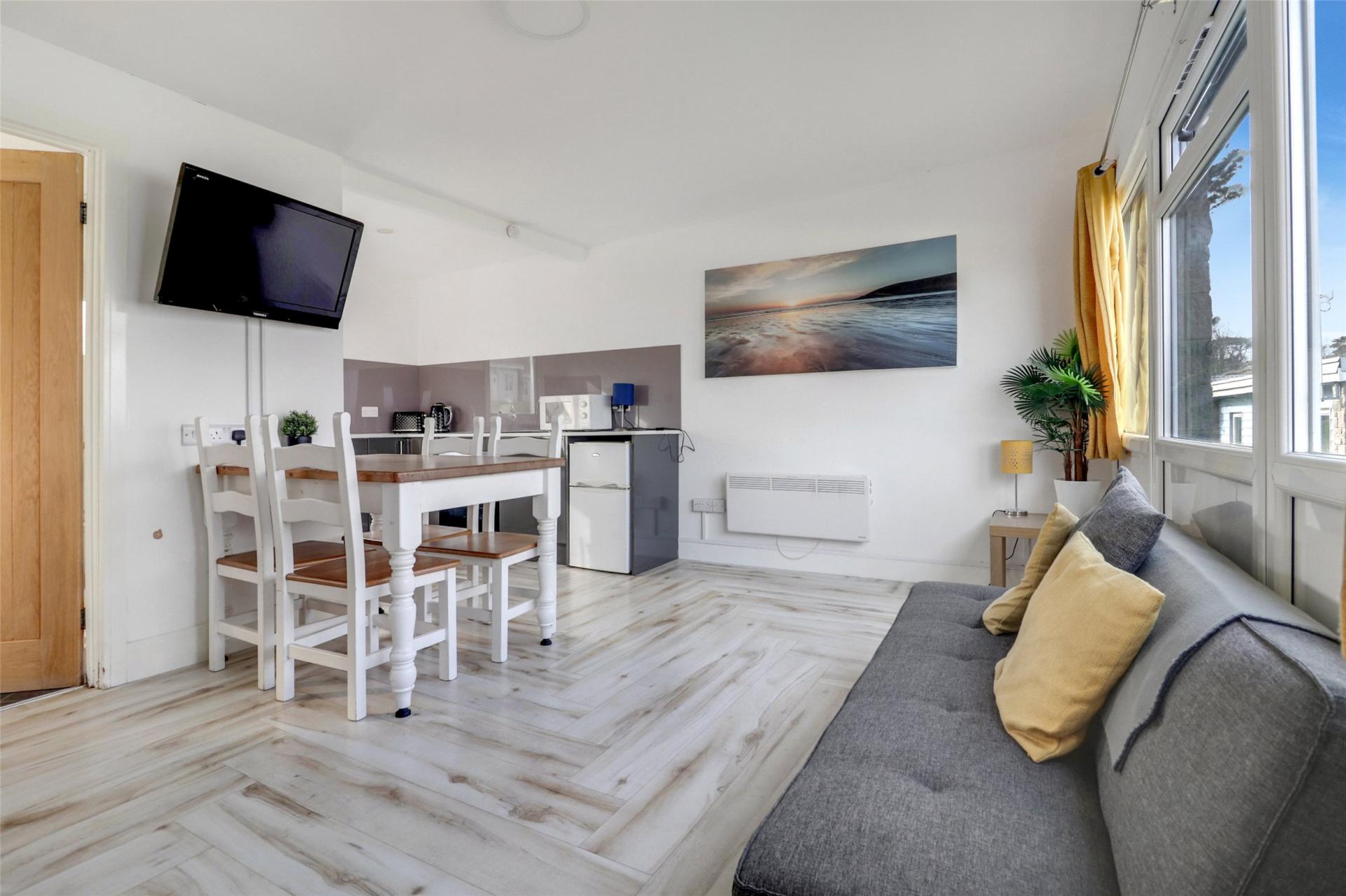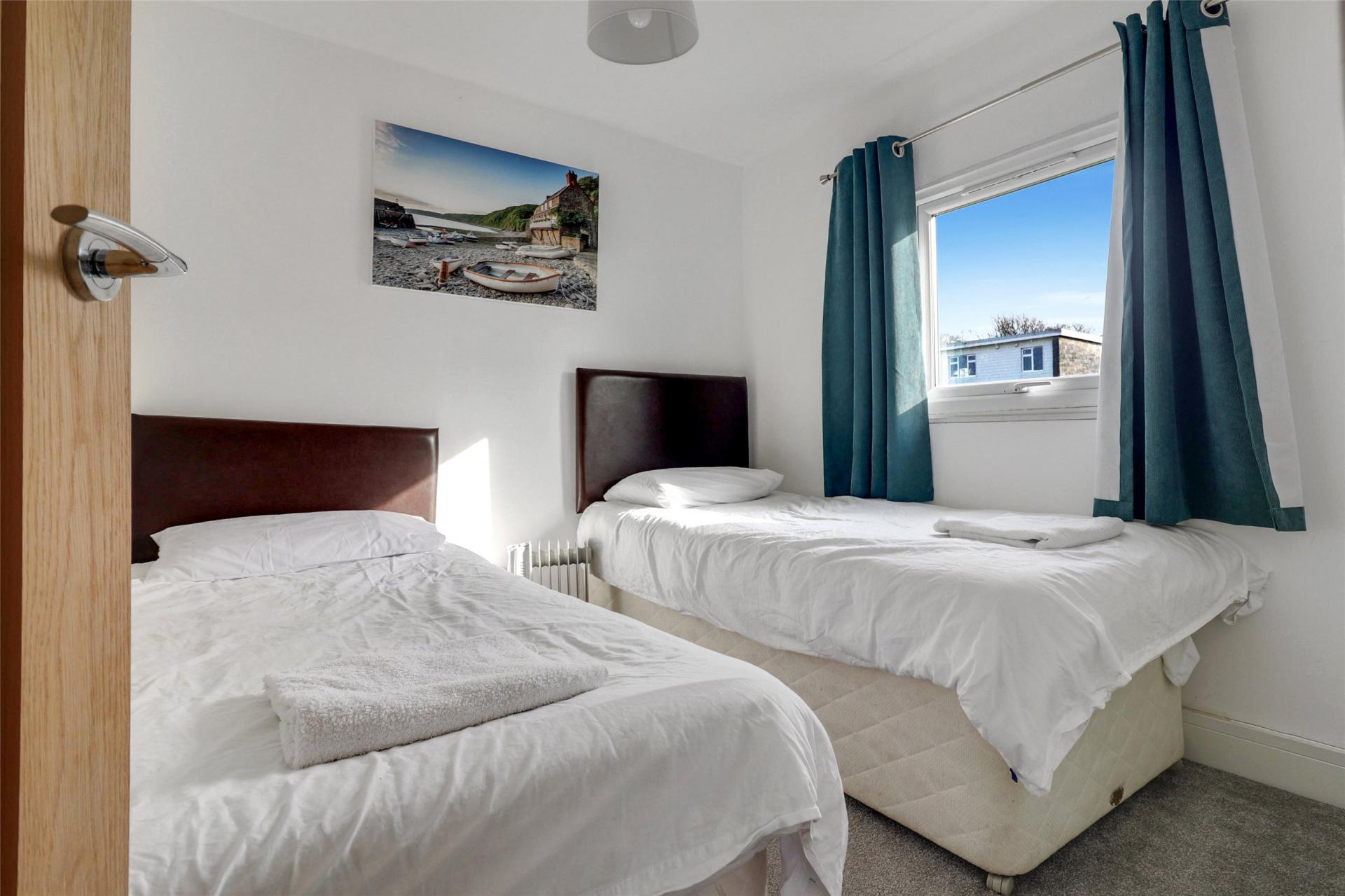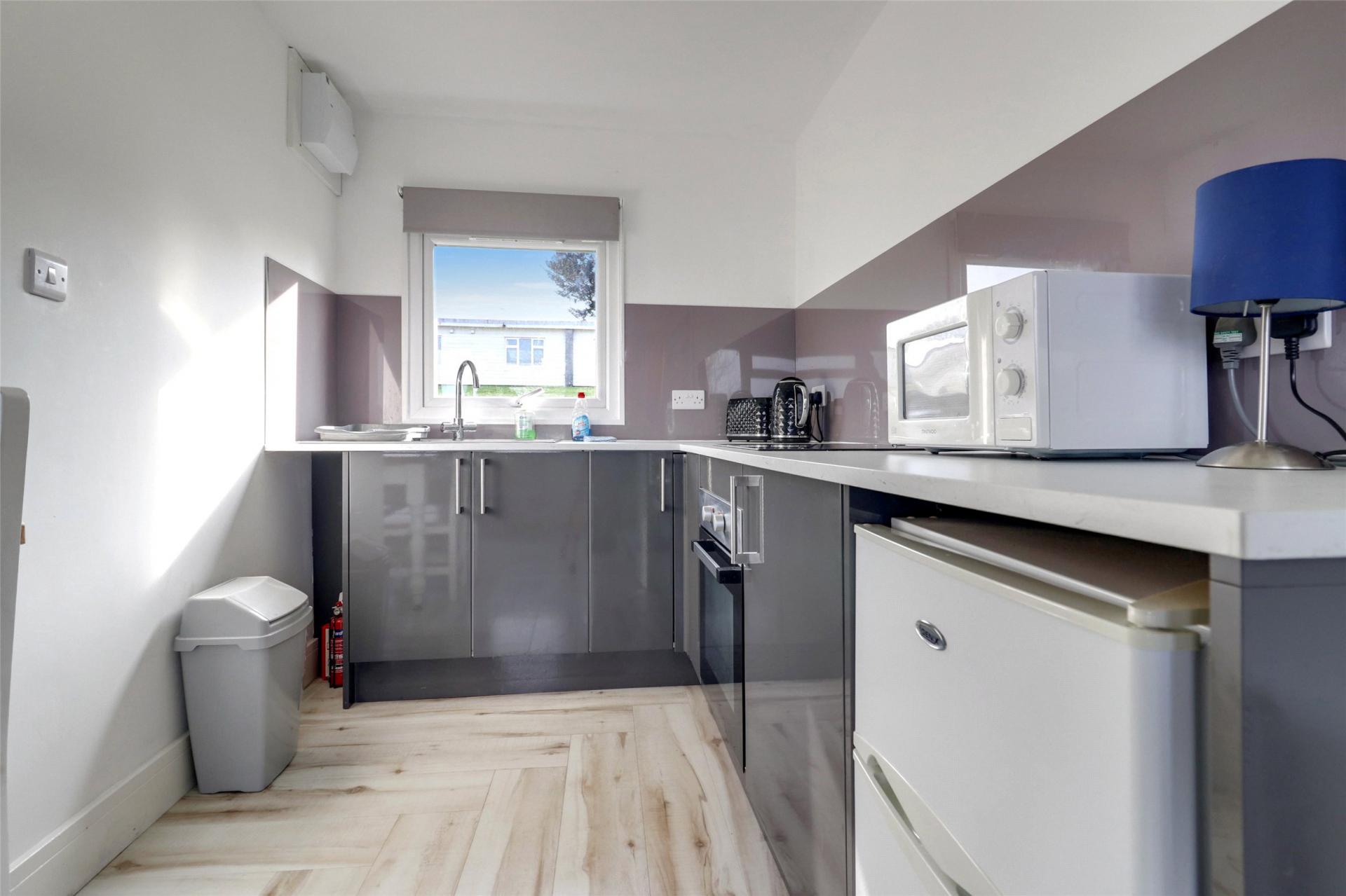This Chalet also features two double bedrooms overlooking the front and rear of the property with the main bedroom overlooking the front and once again being able to enjoy the sea views. To complete the home the modern fitted shower room features a three-piece white suite including WC, wash basin and with a large shower unit.