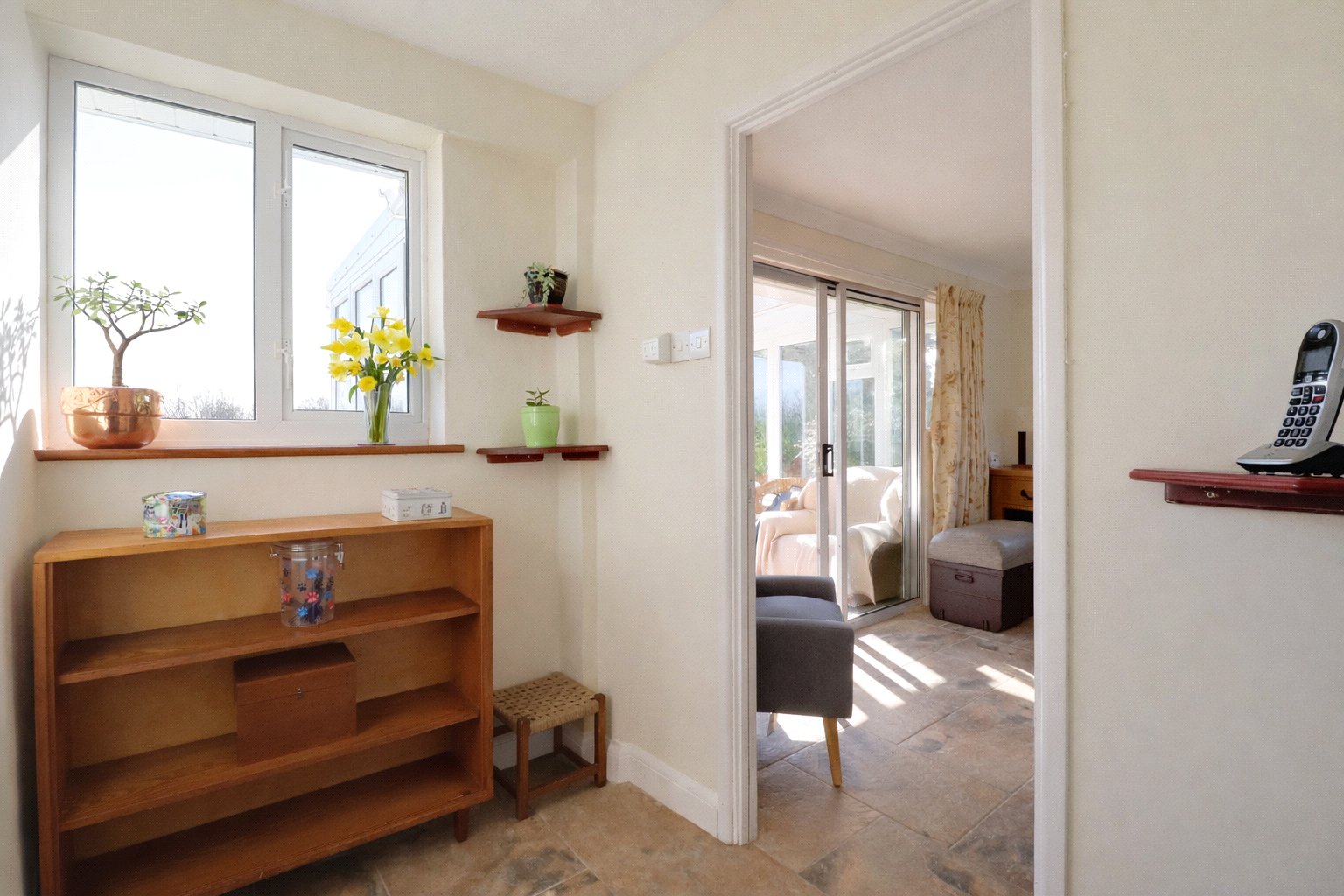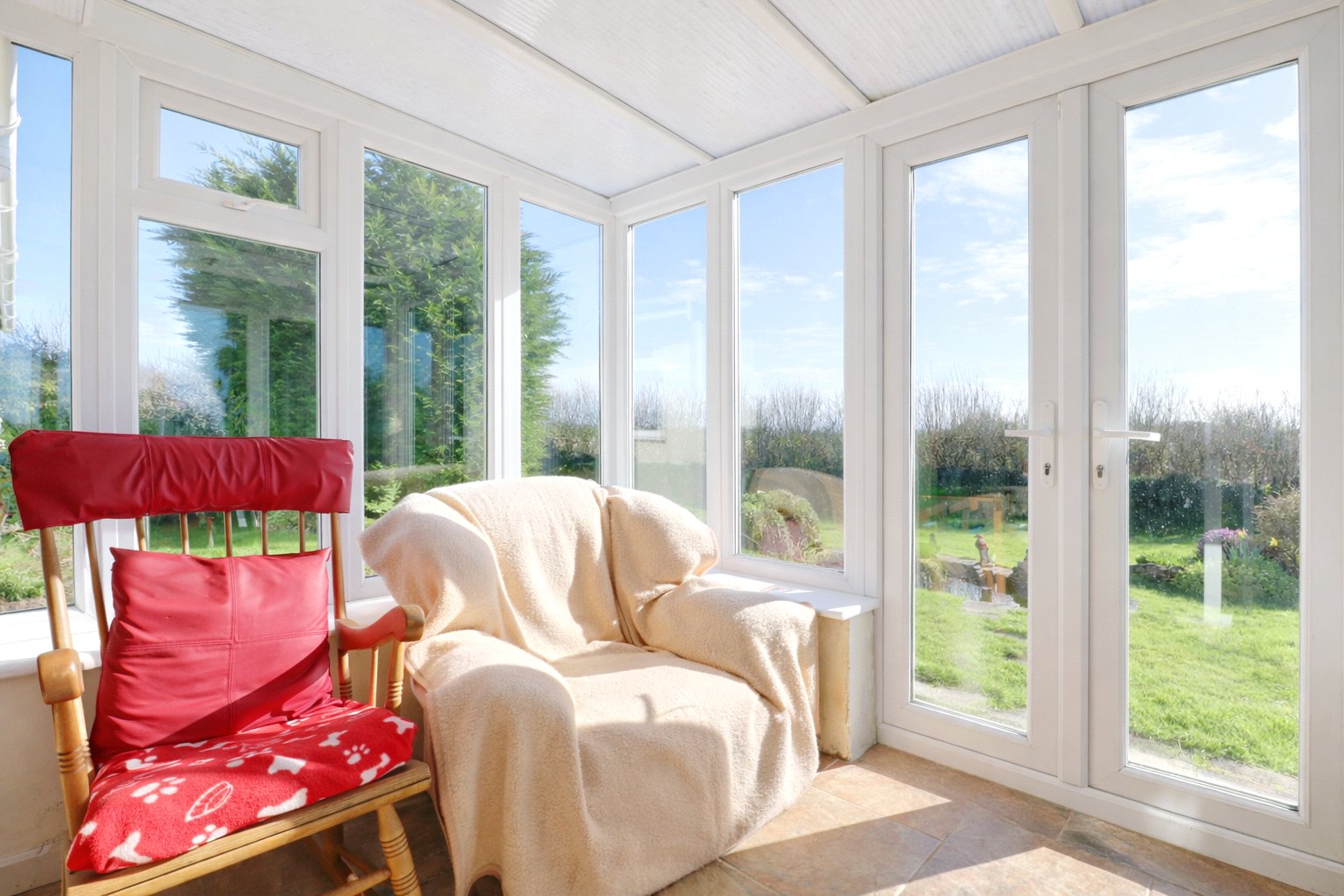 The property enjoys far-reaching views across the surrounding countryside and benefits from a generous south-facing garden, perfectly positioned to take advantage of the tranquil setting. Internally, the accommodation includes a spacious sitting room with a wood-burning stove providing a warm and welcoming focal point, a bright conservatory opening onto the garden, a modern fitted kitchen, and a walk-in wet room. An entrance porch with useful utility space adds further practicality to the layout.