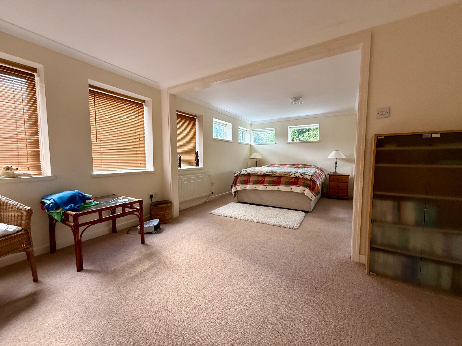 Two high windows to rear, 2 high windows to side, 3 windows to side, 2 mirrored wardrobes, 2 radiators, carpet.