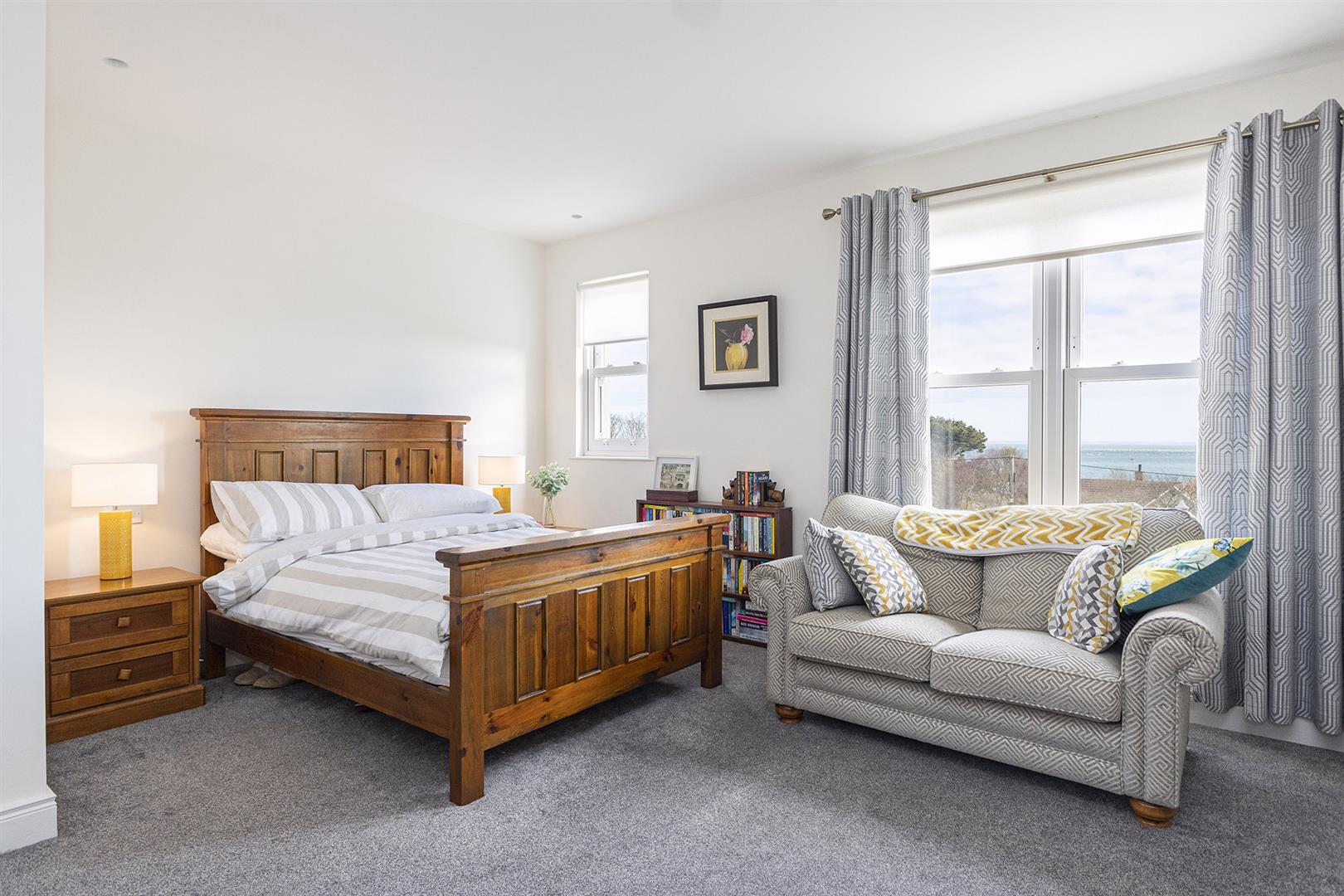 Across the upper two floors are three further bedrooms, two with en suite shower rooms. The principal bedroom benefits from built-in wardrobes and magnificent sea views.