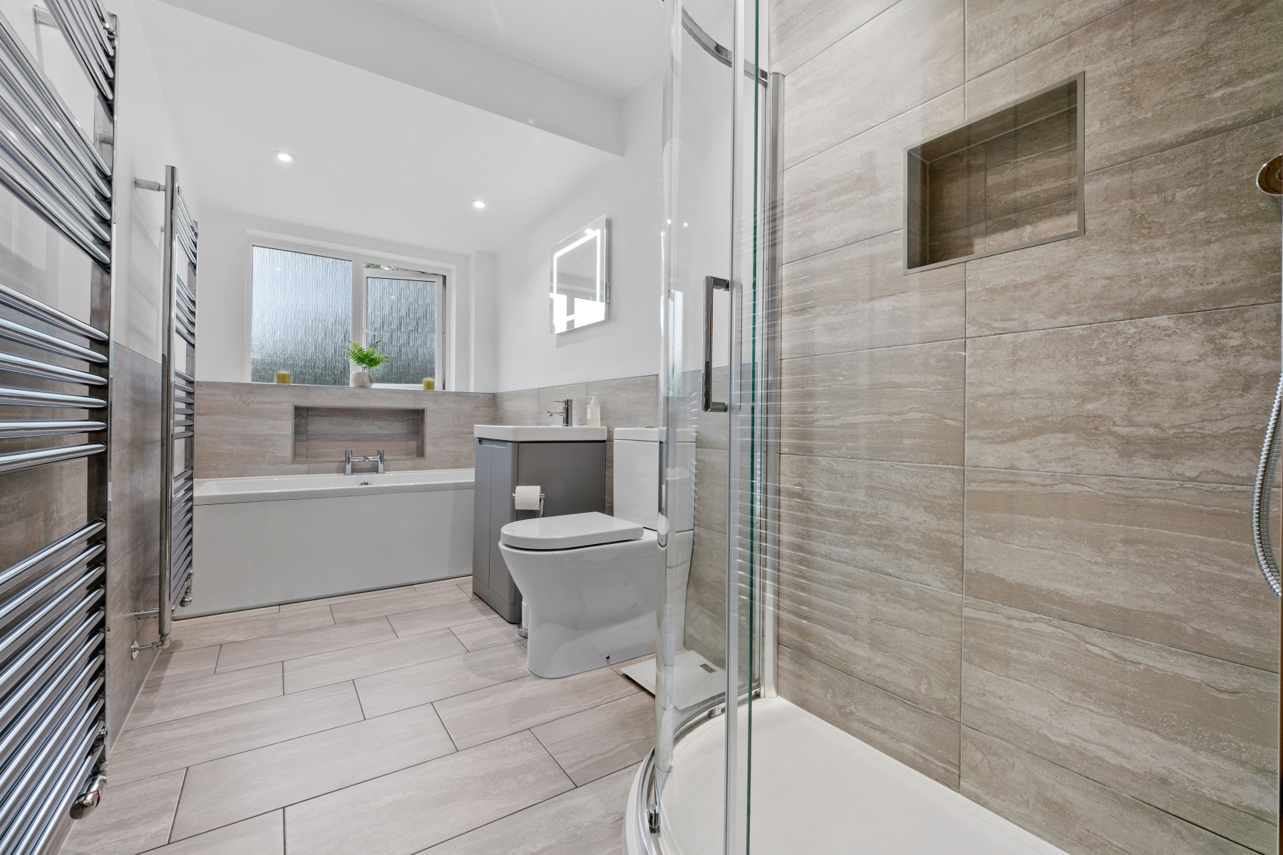 Entering into the spacious and elegant HALLWAY there is a modern CLOAKROOM and a large practical storage cupboard.
