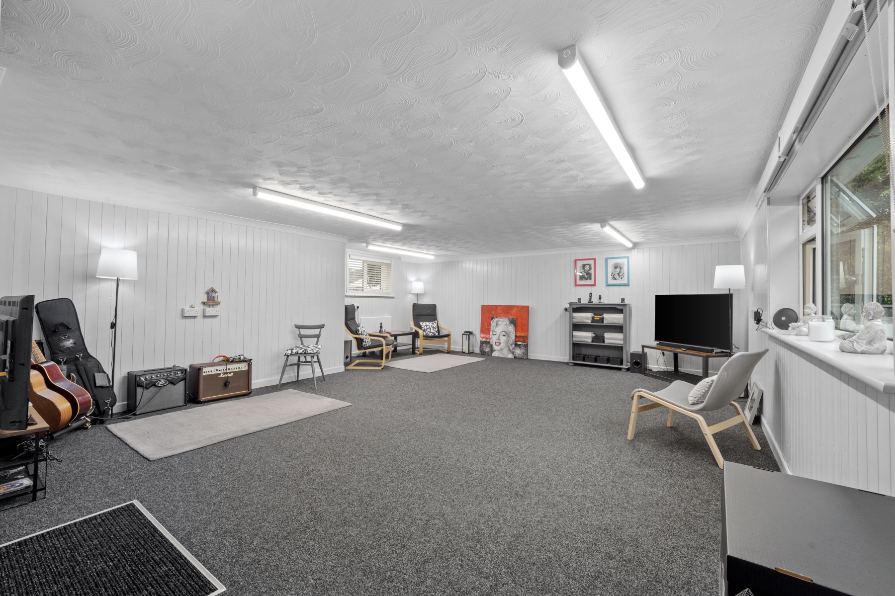 From the GARDEN, a covered walkway leads firstly to the DOUBLE GARAGE with electric up and over door, and plenty of space for a WORKSHOP AREA too, then secondly, the STUDIO/ANNEXE. This is a large versatile, creative space, which could be used as a HOME OFFICE, STUDIO/MUSIC ROOM or separate ANNEXE as it has a kitchenette, and a CLOAKROOM W.C. It could also provide a passive income if used for holiday lets.