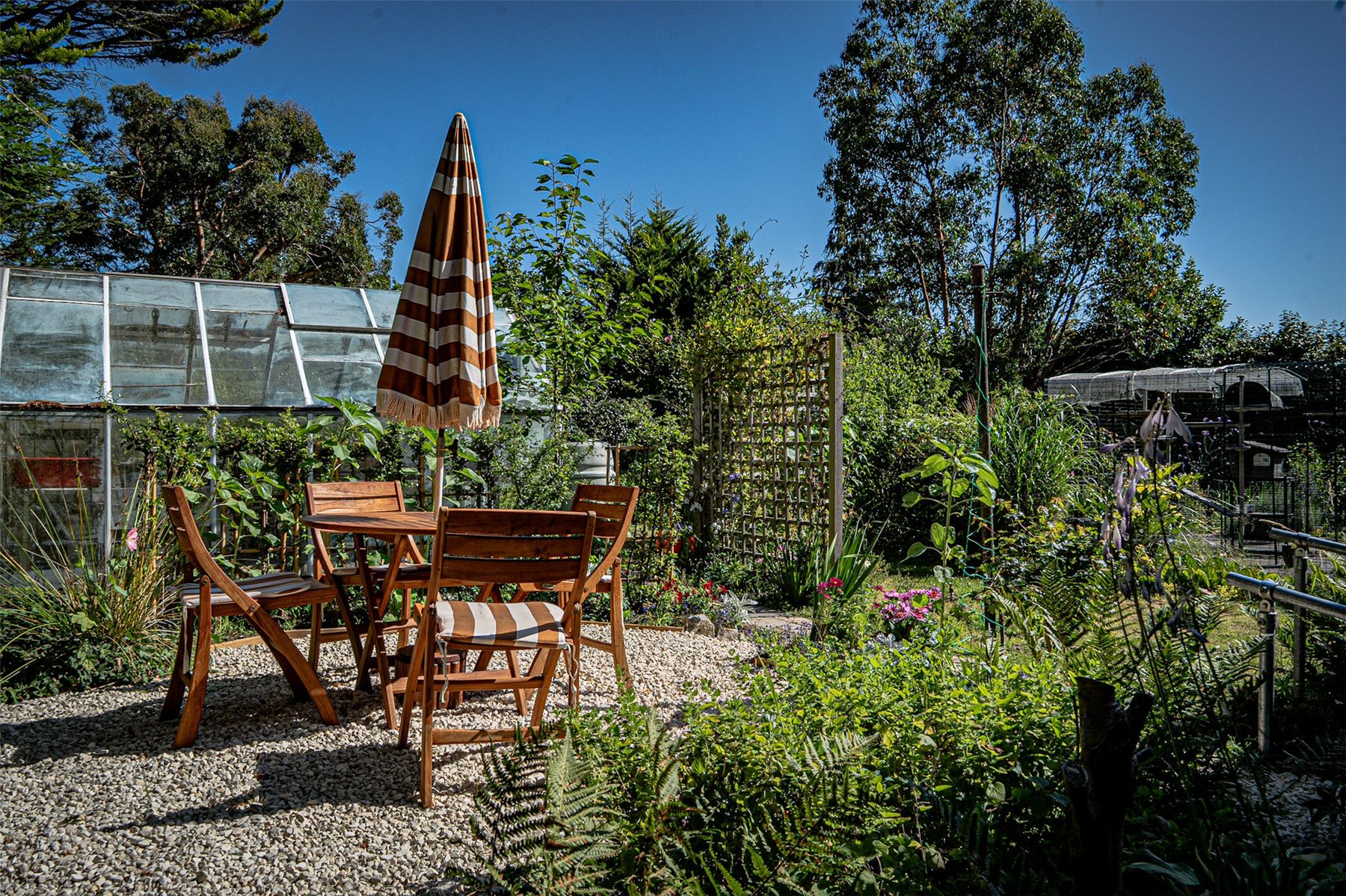 There are raised beds, for kitchen garden growing and trees that are protected with TPO's.