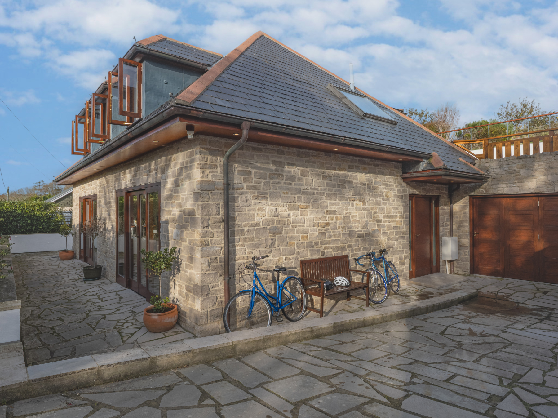 Ascend the polished Purbeck stone stairs to discover three generously sized DOUBLE BEDROOMS, each boasting vaulted ceilings that enhance the sense of space and light. Two of these bedrooms offer awe-inspiring views across Lulworth to the distant hills, creating a serene retreat. One bedroom features double doors leading to an expansive full width paved TERRACE, perfect for morning coffee or evening relaxation. The BATHROOM, with its own access to the terrace, provides a luxurious touch to your daily routine.