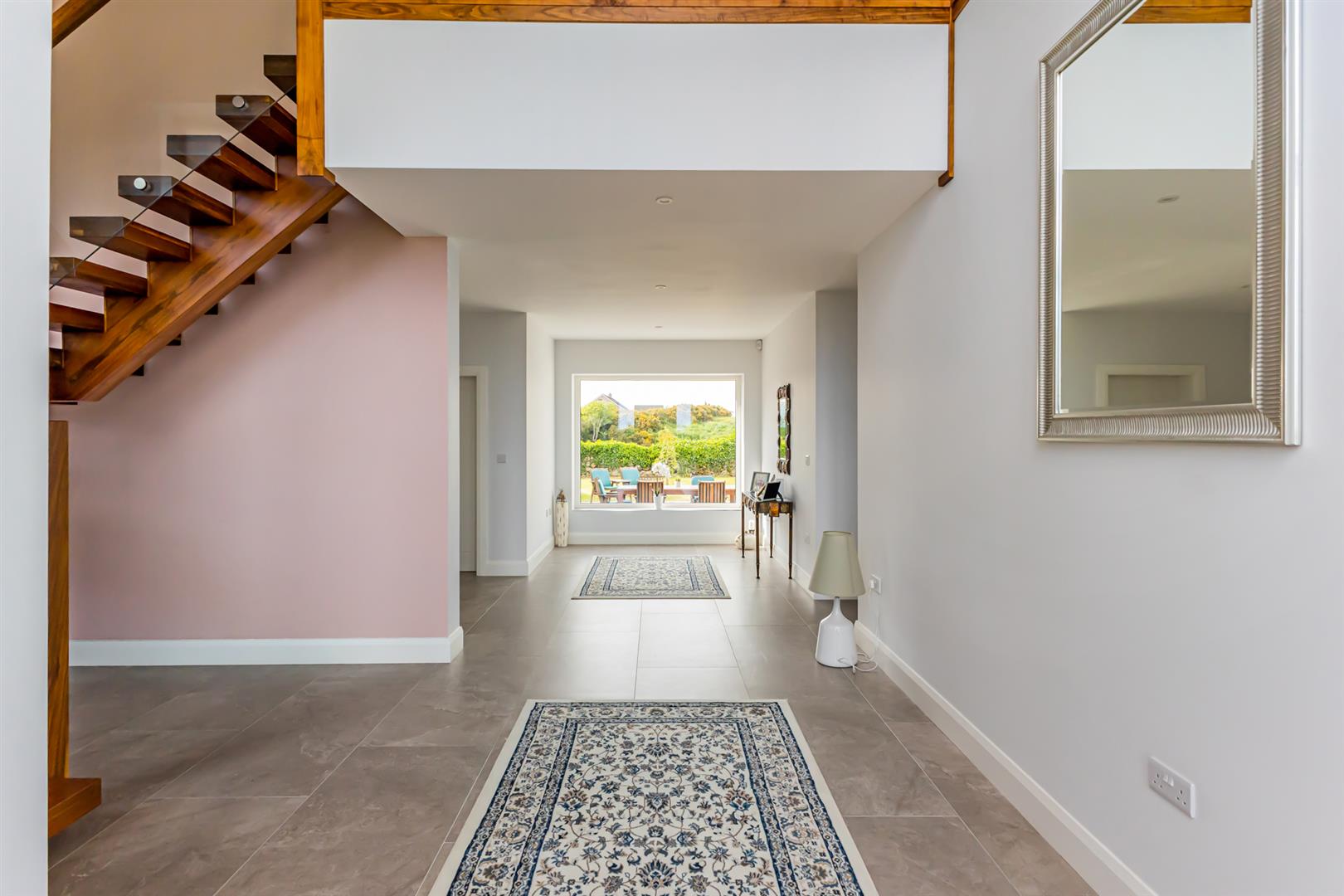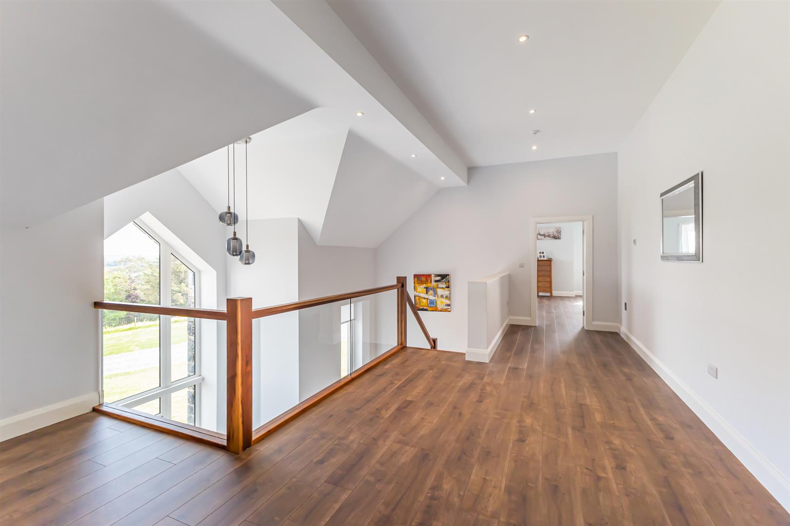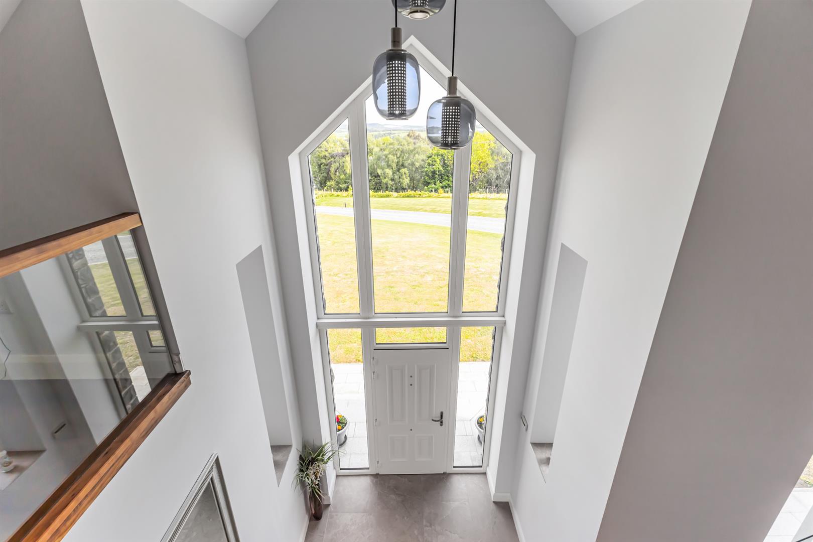 - Striking Reception Hall With Double Height Ceiling, Walnut Open Tread Staircase and Minstrel Gallery with Scenic Outlook