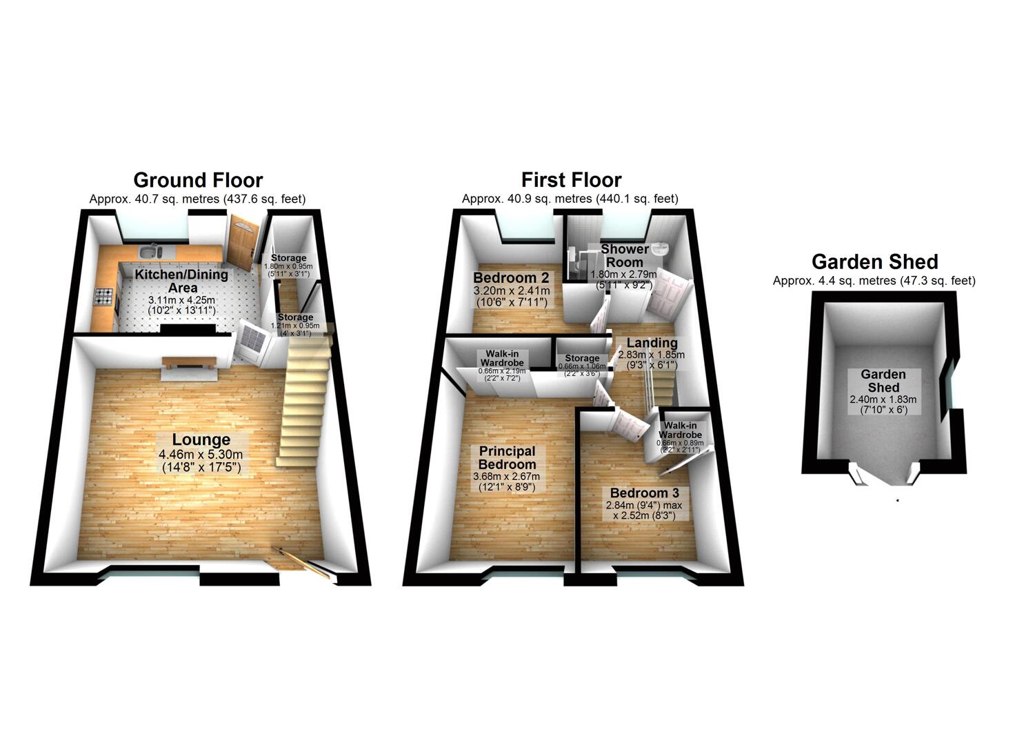 There are three bedrooms, two of which are generous doubles. The principal bedroom enjoys an outlook to the front and benefits from built-in mirrored robes, while bedroom two overlooks the rear garden. Bedroom three also faces the front. The modern family bathroom is finished with a white suite comprising a low flush WC, wall-hung wash hand basin and a walk-in thermostatically controlled shower with drencher head.