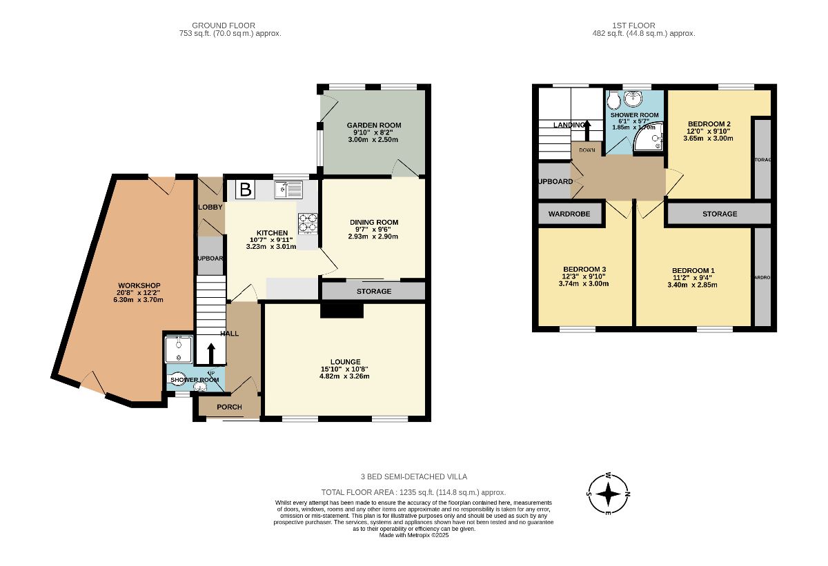 3 Bedrooms, 3 Reception Rooms, 2 Shower rooms. Large Workshop/Utility.