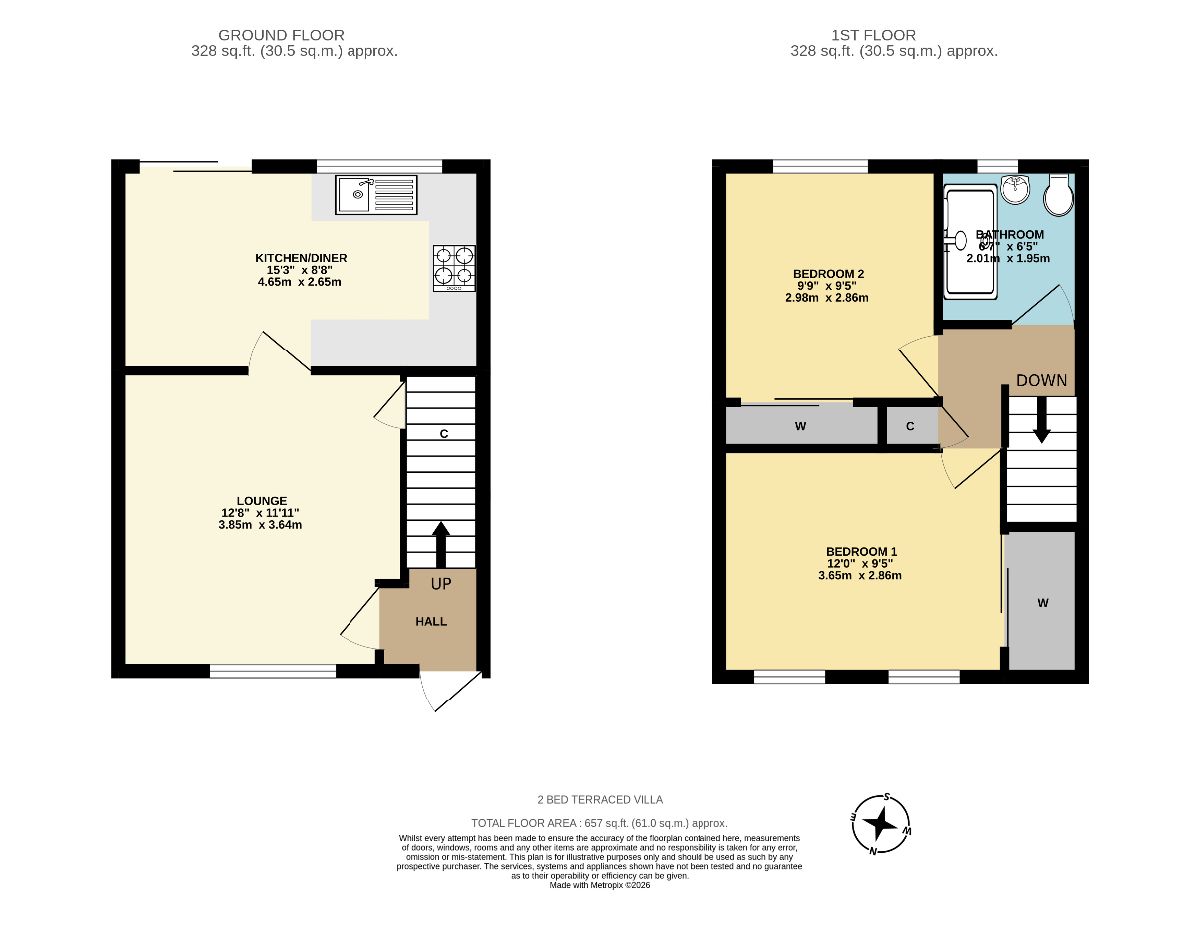 IDEAL FIRST TIME BUY OR BUY TO LET INVESTMENT.SPACIOUS 2 BEDROOM END-TERRACED VILLA.Hall, WC, Lounge, Kitchen, 2 Double...