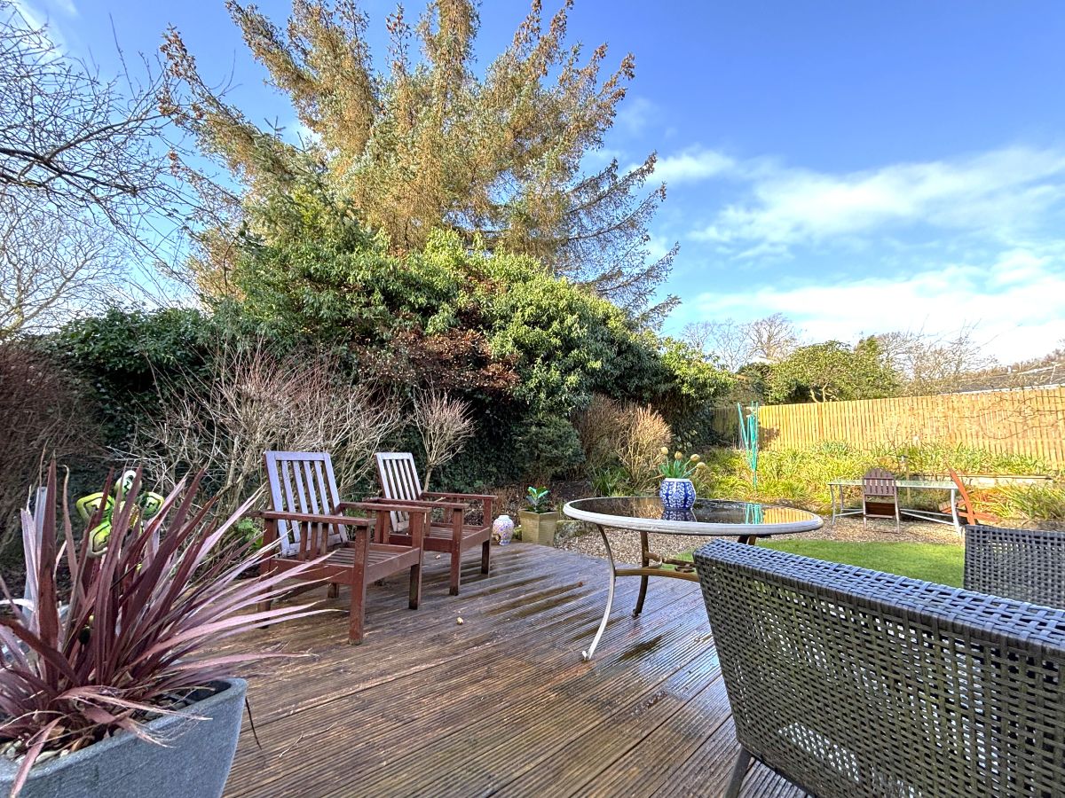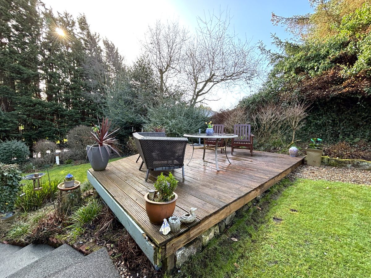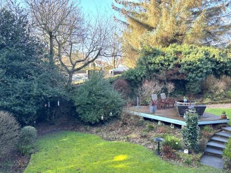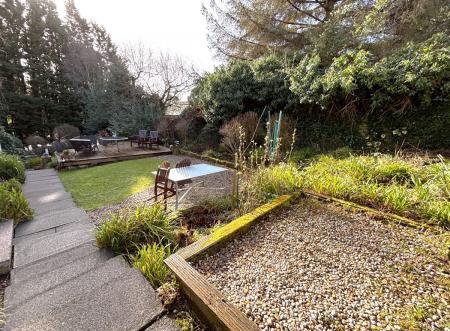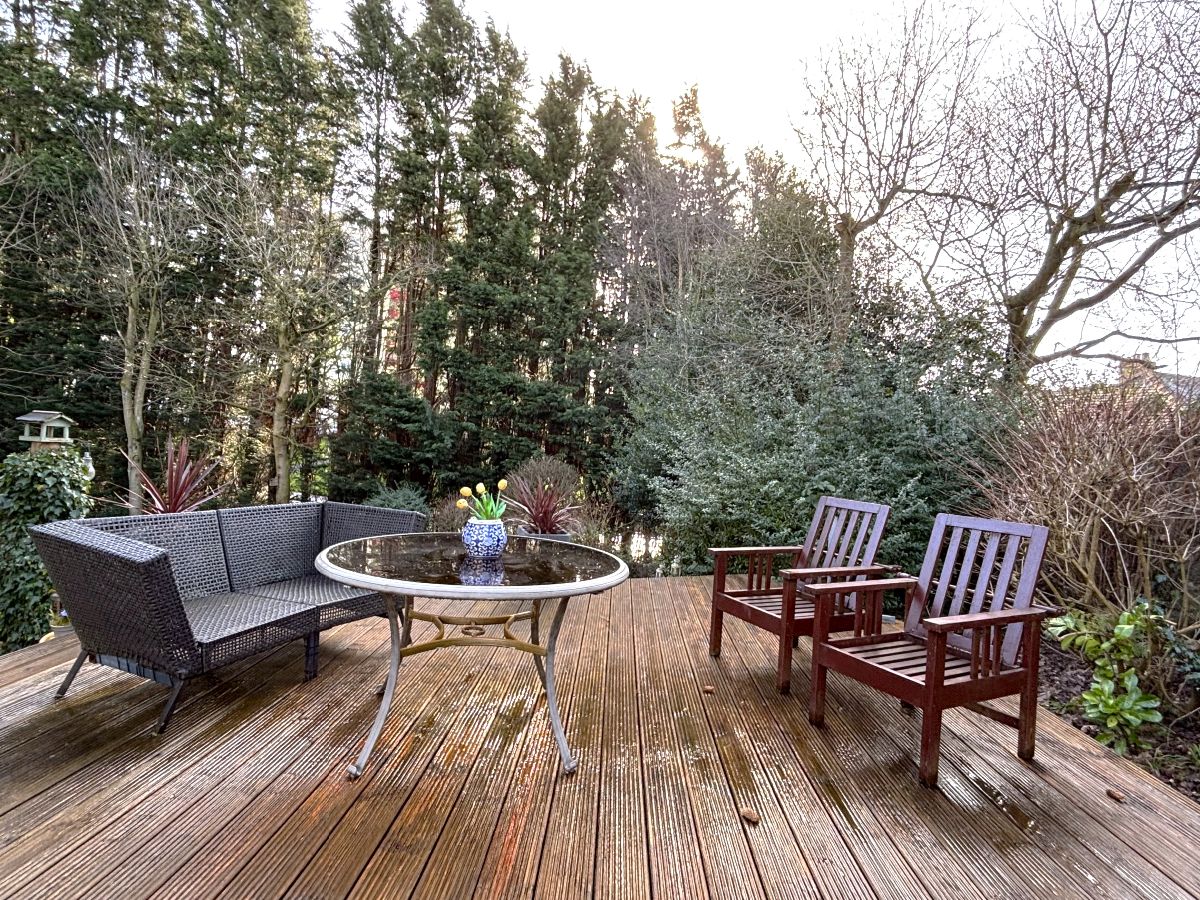 The rear garden is particularly impressive, offering generously proportioned, mature grounds with a high degree of privacy. A private patio area provides an ideal outdoor relaxation and entertaining space.