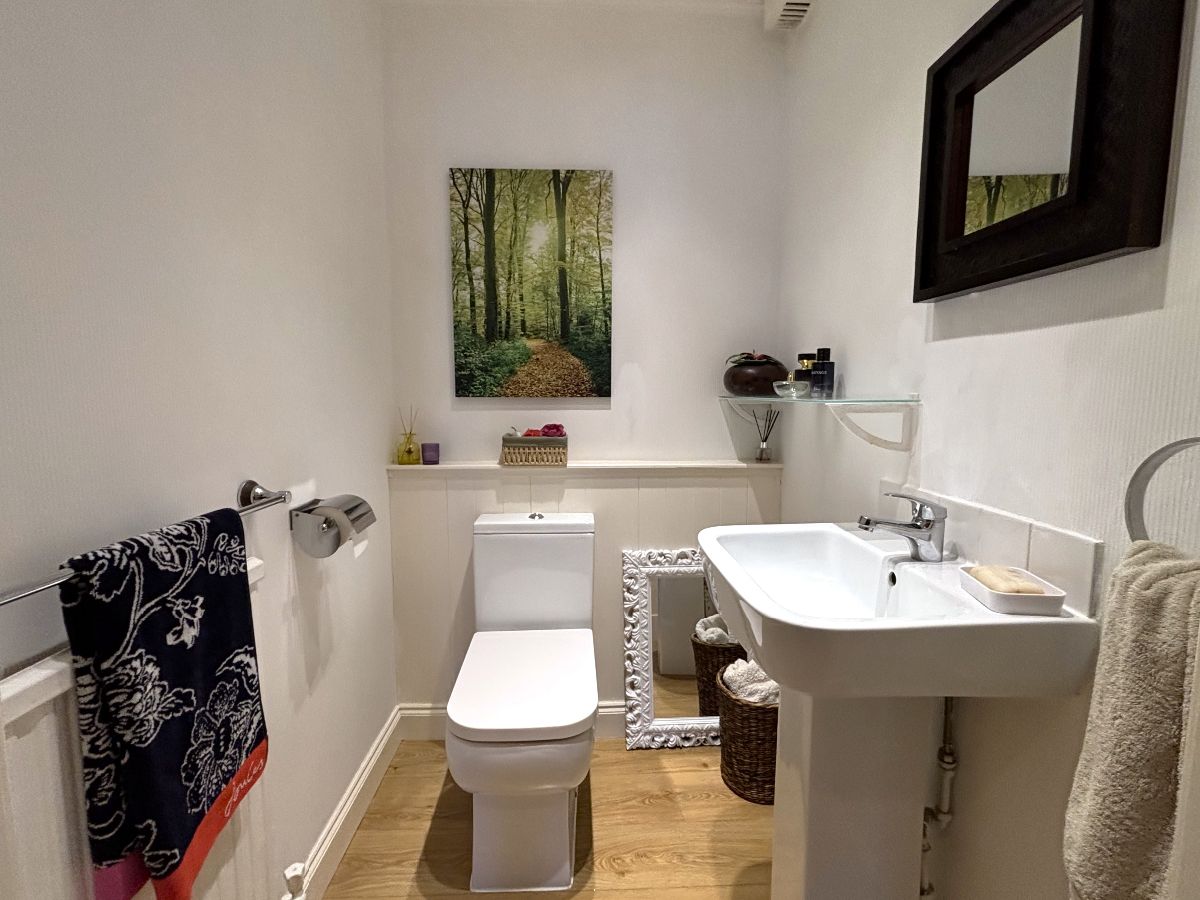 On the lower ground level, a hallway with additional storage leads to the family bathroom and three further well-proportioned bedrooms. Bedroom Two benefits from excellent wardrobe storage and a private ensuite shower room. Bedroom four boasts fitted mirrored wardrobes.