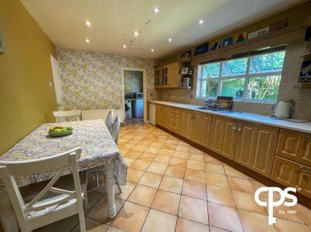 Kitchen / Dining Area – 5.78m x 3.39mA spacious kitchen with tiled flooring, high and low-level units, a stainless steel sink, integrated cooker with gas stove, and space for a fridge freezer. A rear-facing window and radiator complete this functional and inviting space, ideal for everyday family life or entertaining.