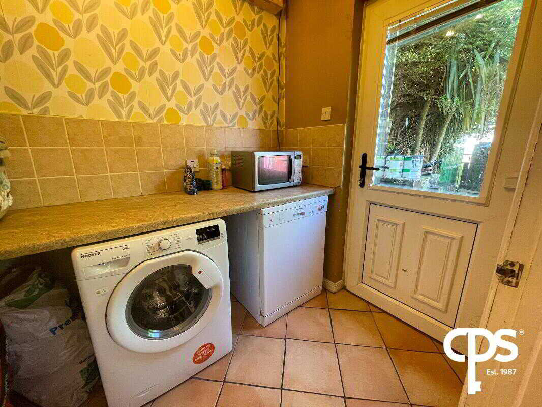 Utility Room – 1.57m x 2.19mLocated off the kitchen and finished in the same tile flooring, this room provides space and plumbing for a washing machine and tumble dryer, with direct access to the rear garden.