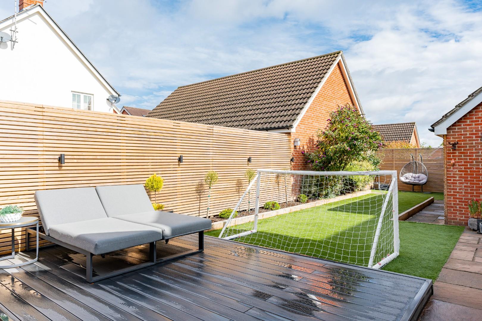 Garden - To the rear of the property, a sandstone patio leads onto an area of low-maintenance artificial lawn and a raised composite decked terrace. The garden also features an elevated shrub border, hit-and-miss cladded fencing, external lighting, power points, and a water tap. A timber gate provides convenient rear access to the driveway.