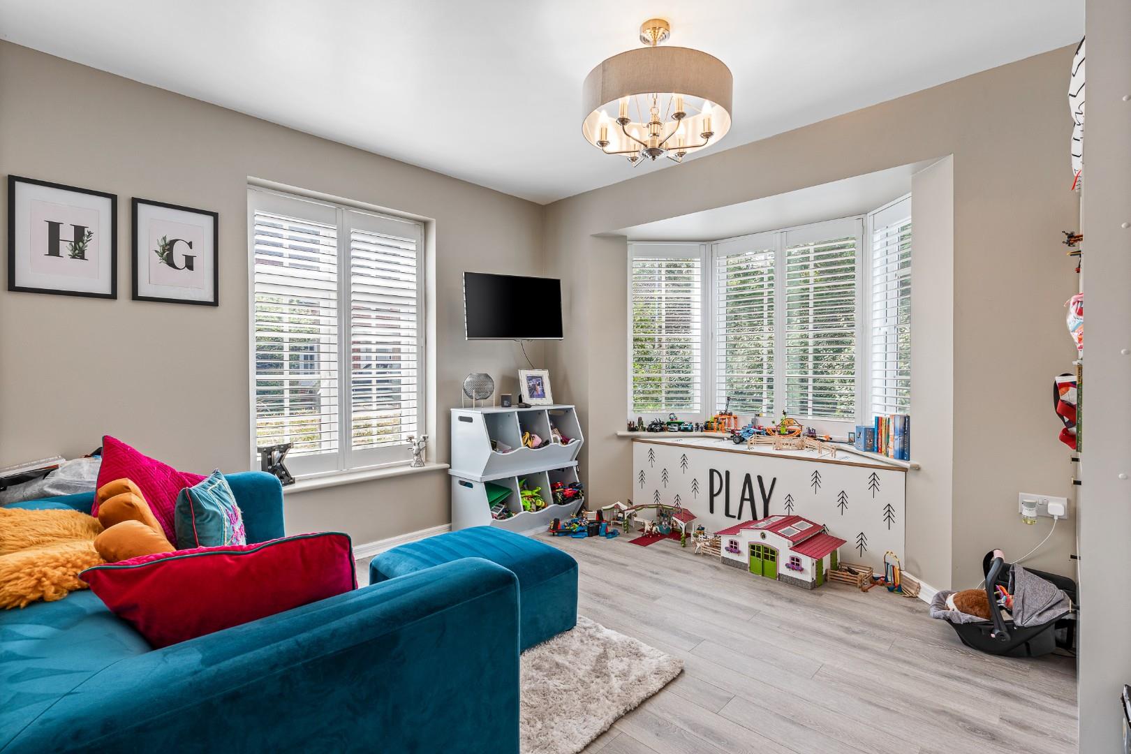 Playroom - UPVC double glazed bay window to side aspect with fitted shutters, UPVC double glazed window to front aspect with fitted shutters, wood effect flooring, radiator, power points, T.V point.