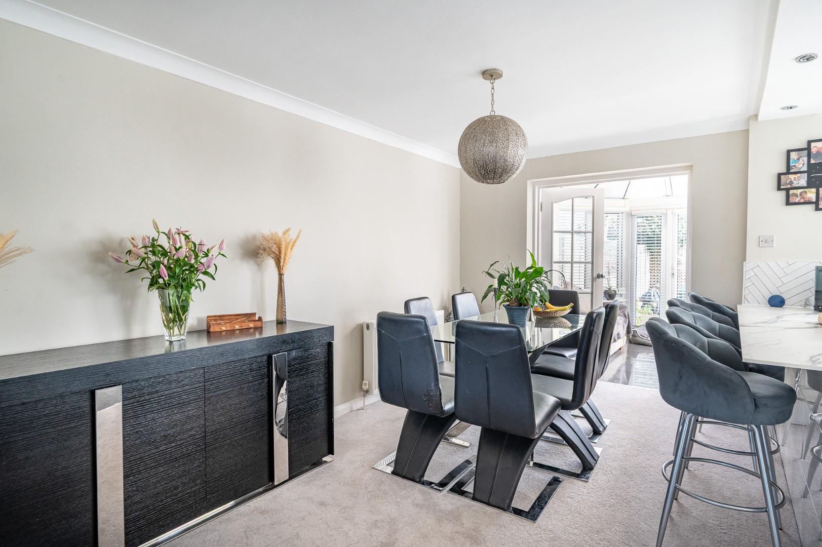 Kitchen/Dining Room - 5.13 x 4.1 (16'9" x 13'5") - UPVC double glazed window to side aspect, base level units with marble effect working surfaces over & breakfast bar area, inset double sink, inset double oven, induction hob with extractor over, integrated fridge/freezer, integrated dishwasher, radiator, inset spotlights, power points, opening to conservatory, double doors to.