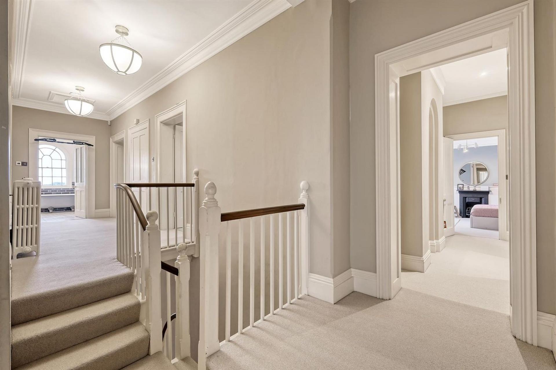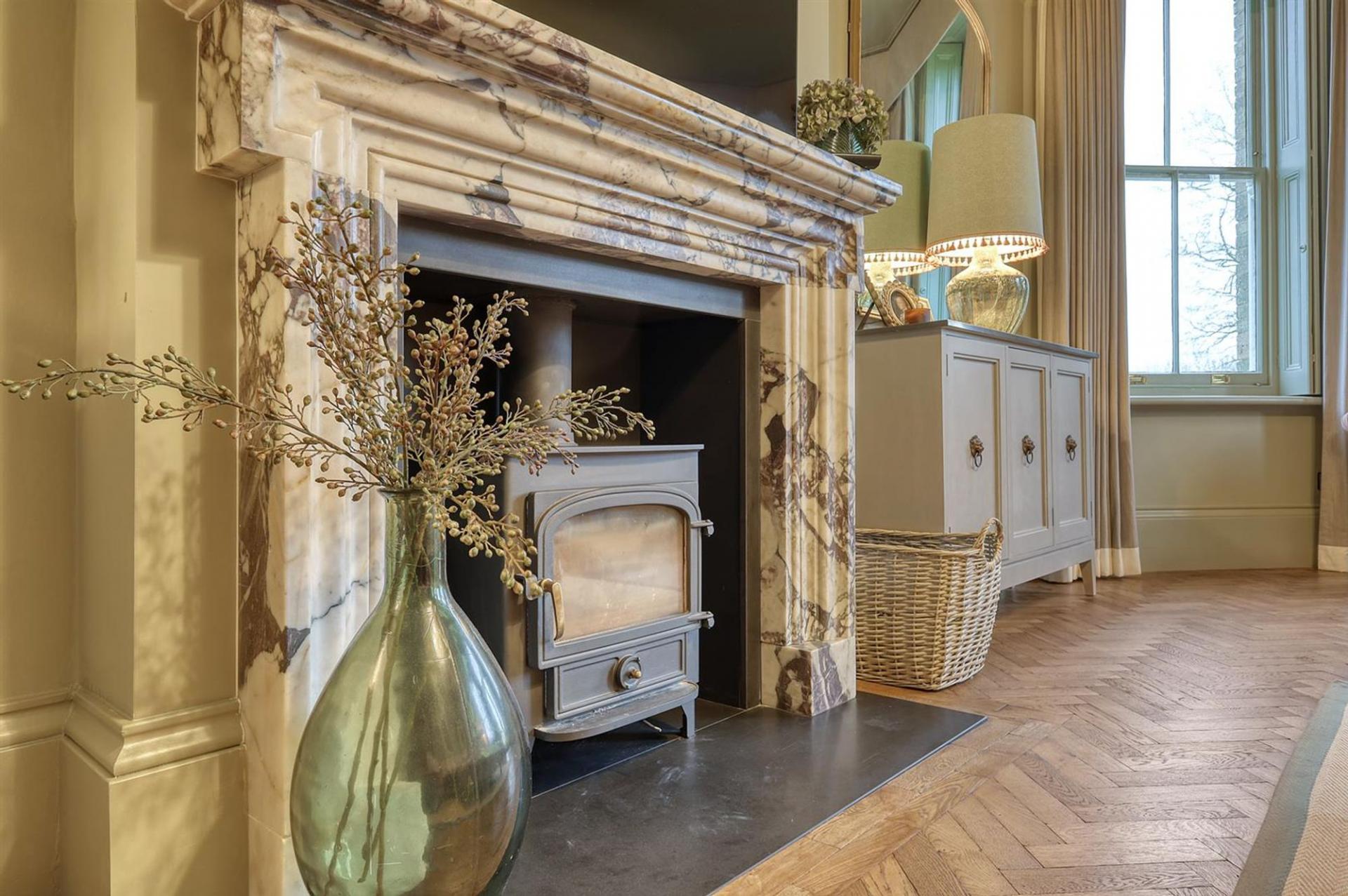 Having an array of period features, in keeping with the late Georgian era, including high ceilings, hand-tooled cornicing, deep architraves and cabinetry, in addition to tall sash windows, original glazing bars and, in many cases, the original glass. Several elegant fireplaces with marble surrounds - restored and enhanced - sit effortlessly against a more contemporary interior, making for a welcoming family home.