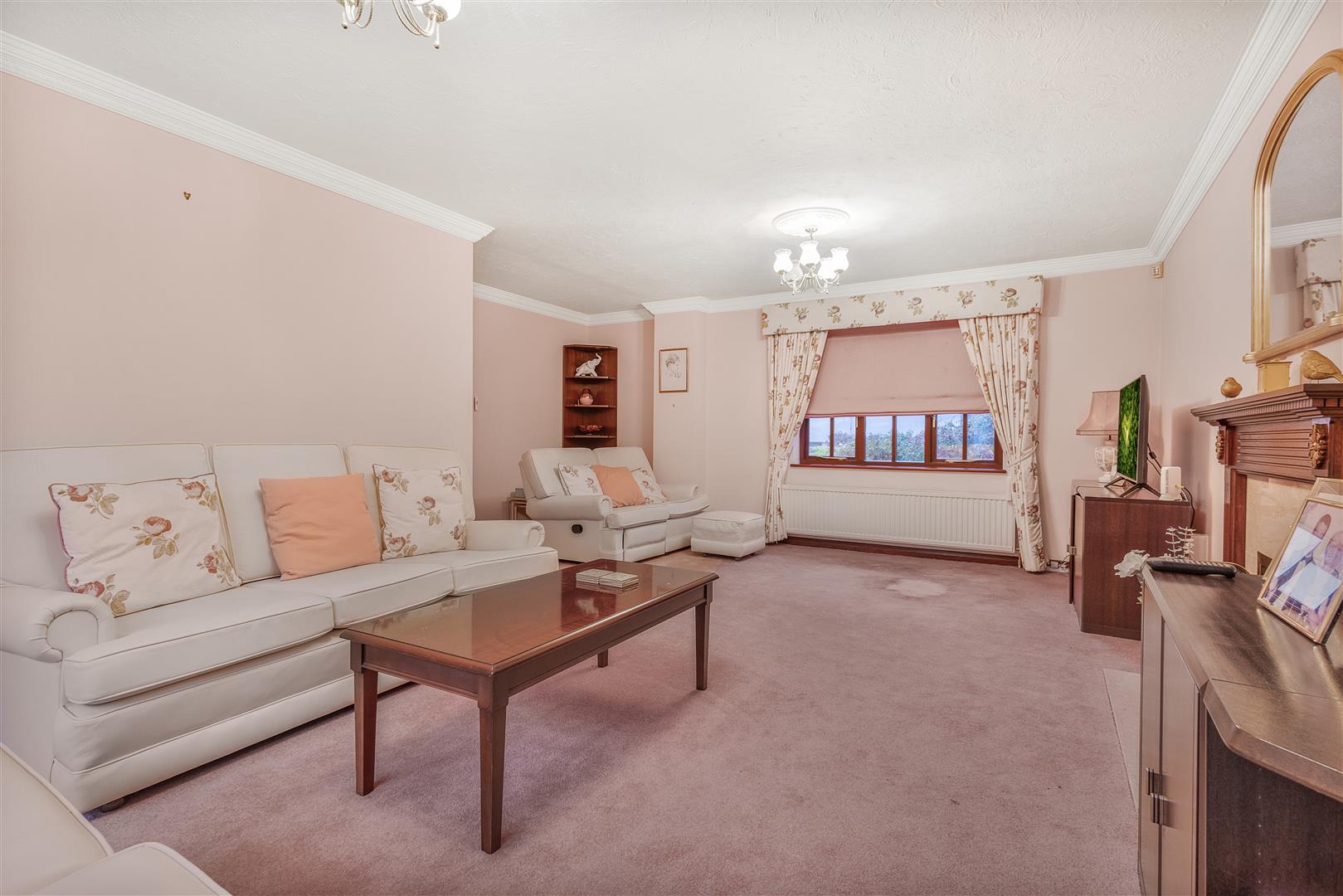 Living Room - 6.5m x 4.0m (21'3" x 13'1") - Double glazed timber windows to front aspect, aluminium sliding double glazed doors to rear aspect, gas feature fireplace with wooden mantel piece, wall mounted radiators, carpeted flooring, ceiling mounted light fixtures, various power points, TV point.