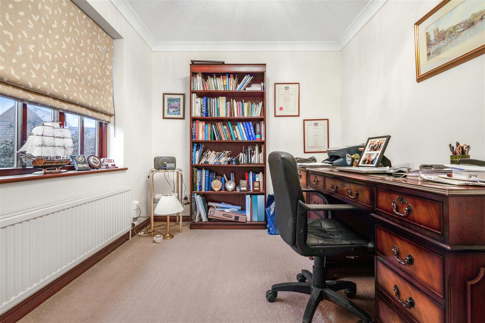Study - 3.3m x 2.5m (10'9" x 8'2") - Double glazed timber window to front aspect, fibre to the cabinet internet, wall mounted radiator, carpeted flooring, ceiling mounted light fixture, various power points, TV point.