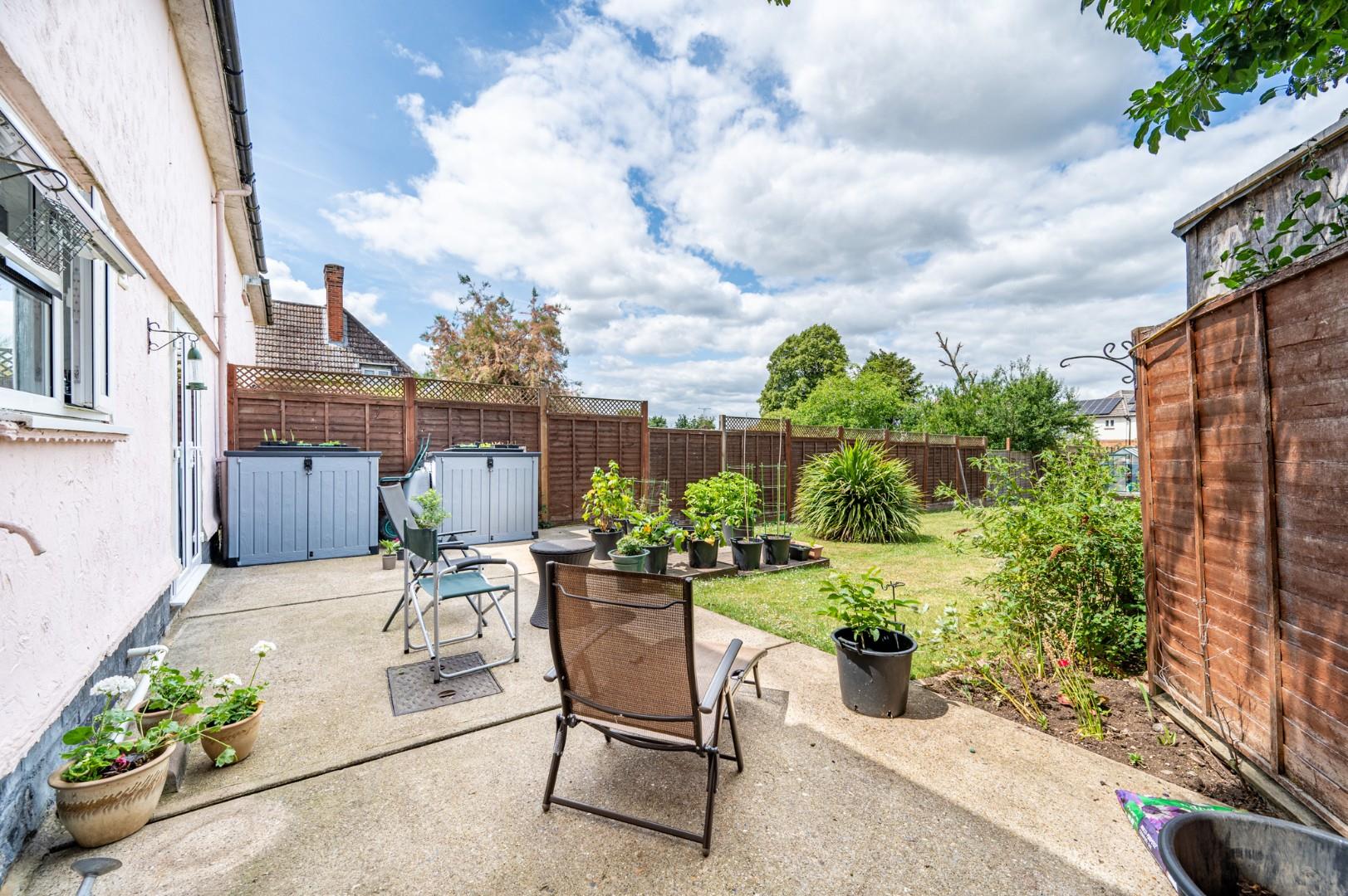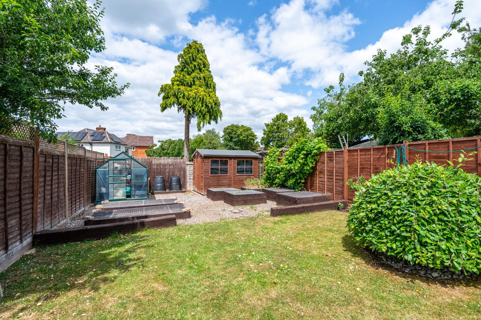 Rear Garden - The rear garden is very unique for this style property and stretches approximately 100ft. It is made up of mainly lawn with an array of flower beds and a seating area directly to the rear. At the foot of the garden are various raised vegetable patches and a timber shed. Further benefits include a brick built storage housing a spare freezer.