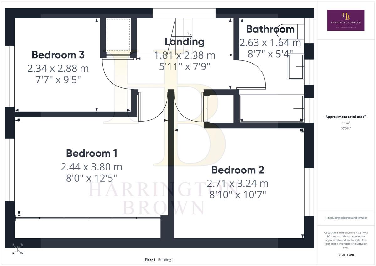 Landing w: 1.81m x l: 2.38m (w: 5' 11" x l: 7' 10")
