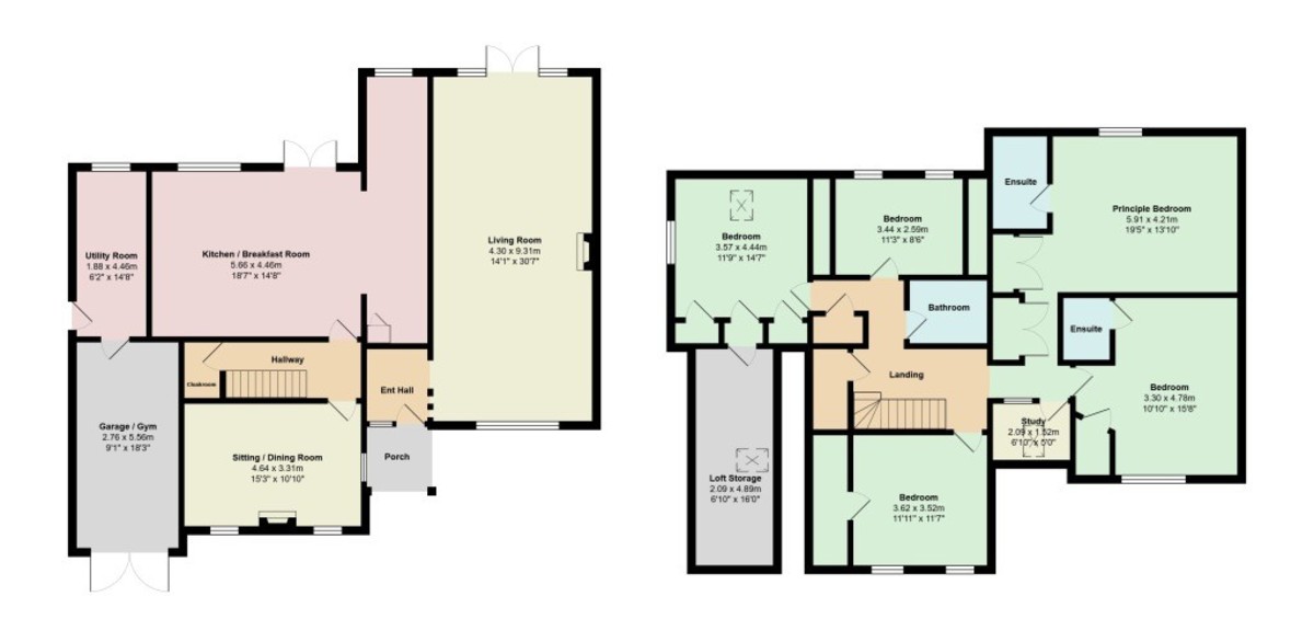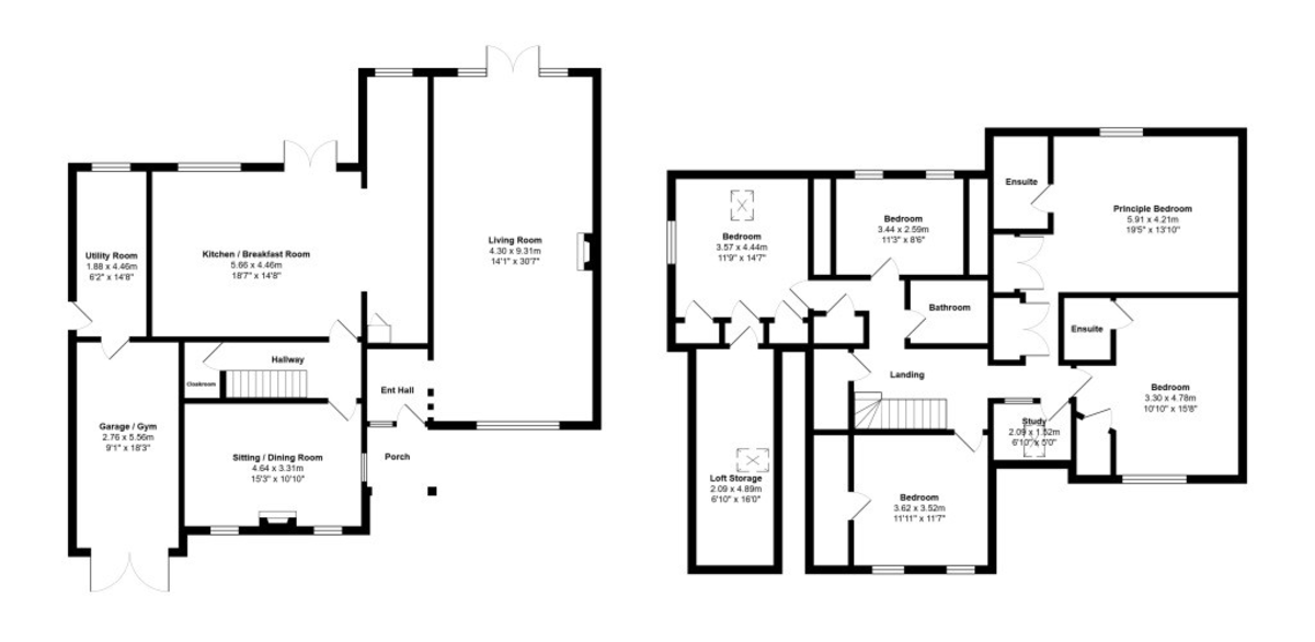 The first floor reveals five generously proportioned bedrooms, each thoughtfully designed to balance light, comfort, and functionality. Two bedrooms benefit from their own en-suite shower rooms, while the remaining rooms share a stylish family bathroom.