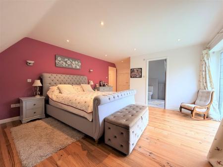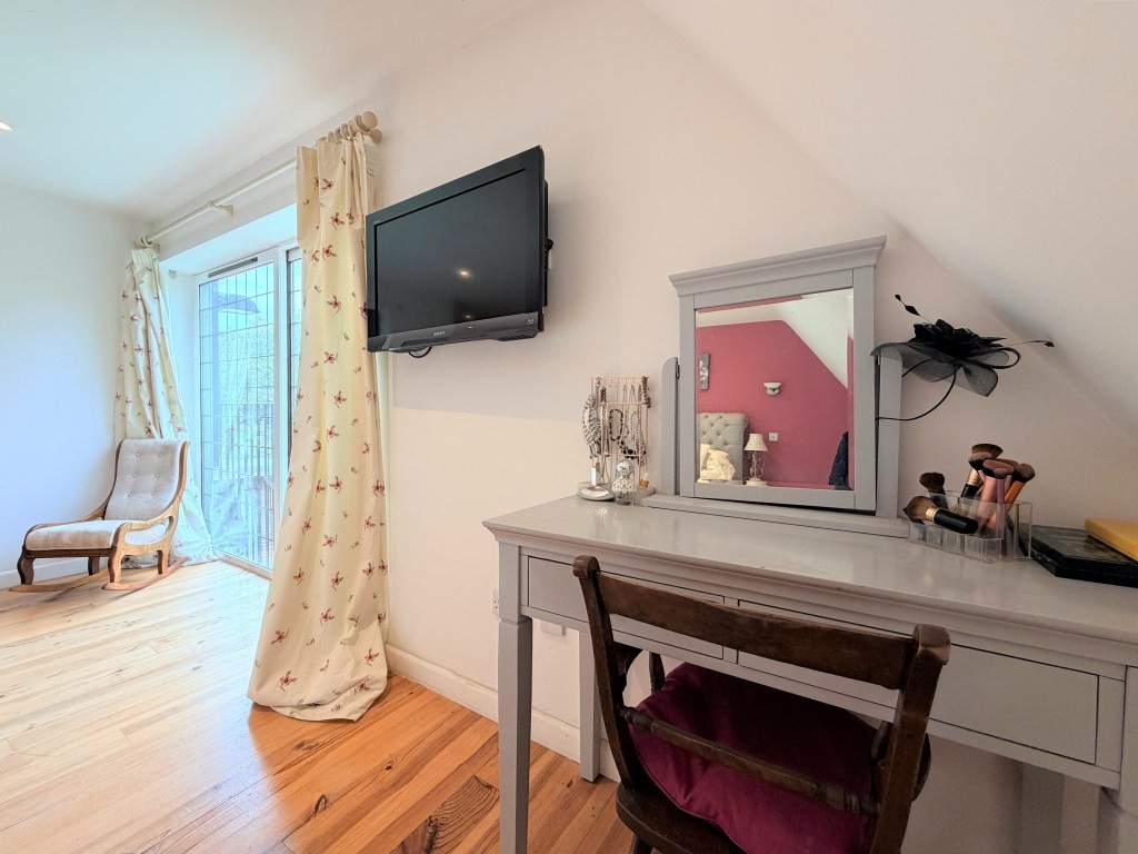 The principal suite provides a true sanctuary. With its calming atmosphere, dressing area, and private en-suite shower room, it offers both luxury and seclusion. Sliding doors open to a Juliet balcony, framing delightful garden views and enhancing the room's sense of openness.