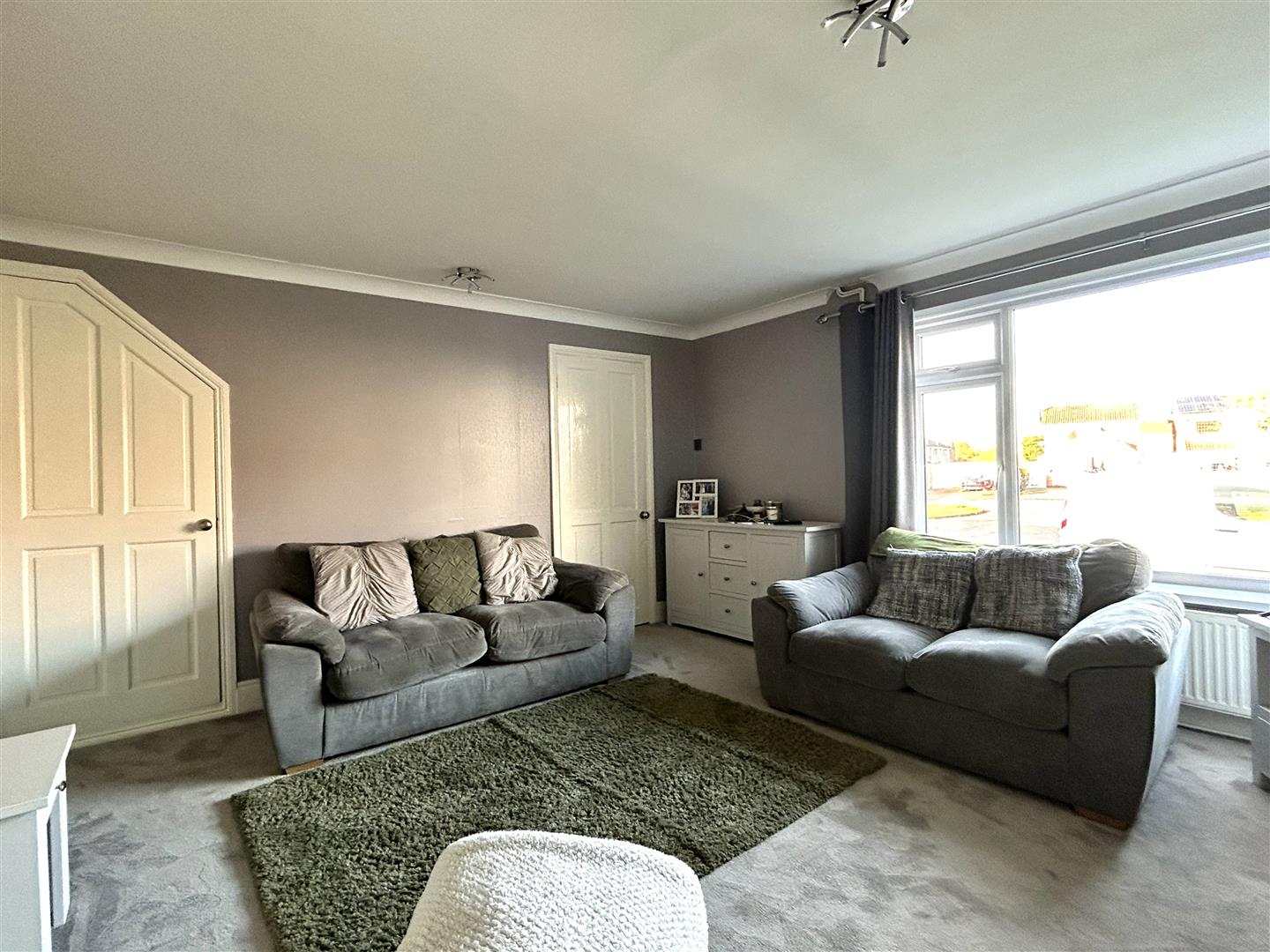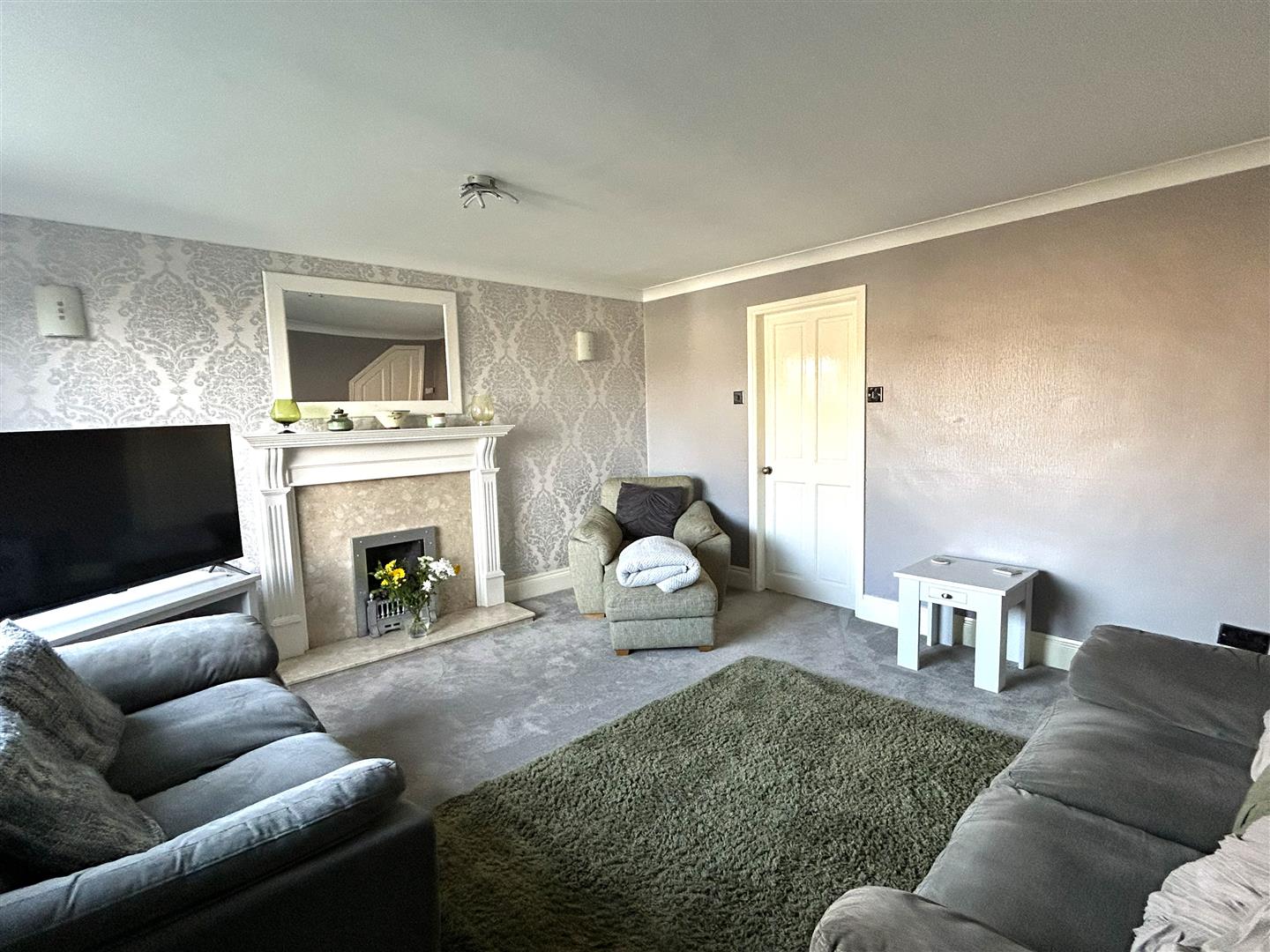 Lounge - 4.22m x 4.22m (13'10 x 13'10) - Spacious lounge with coved ceiling, gas fire and surround, storage under the stairs and leads into.