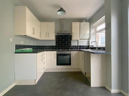 Kitchen-Diner - 2.60 x 4.26 (8'6" x 13'11" ) - Fitted with a range of floor and wall mounted units with roll top work surfaces and tiled splashbacks, the kitchen also benefits from a fitted oven, hob and extractor, sink and drainer unit, plumbing for a washing and patio doors leading onto the rear garden.