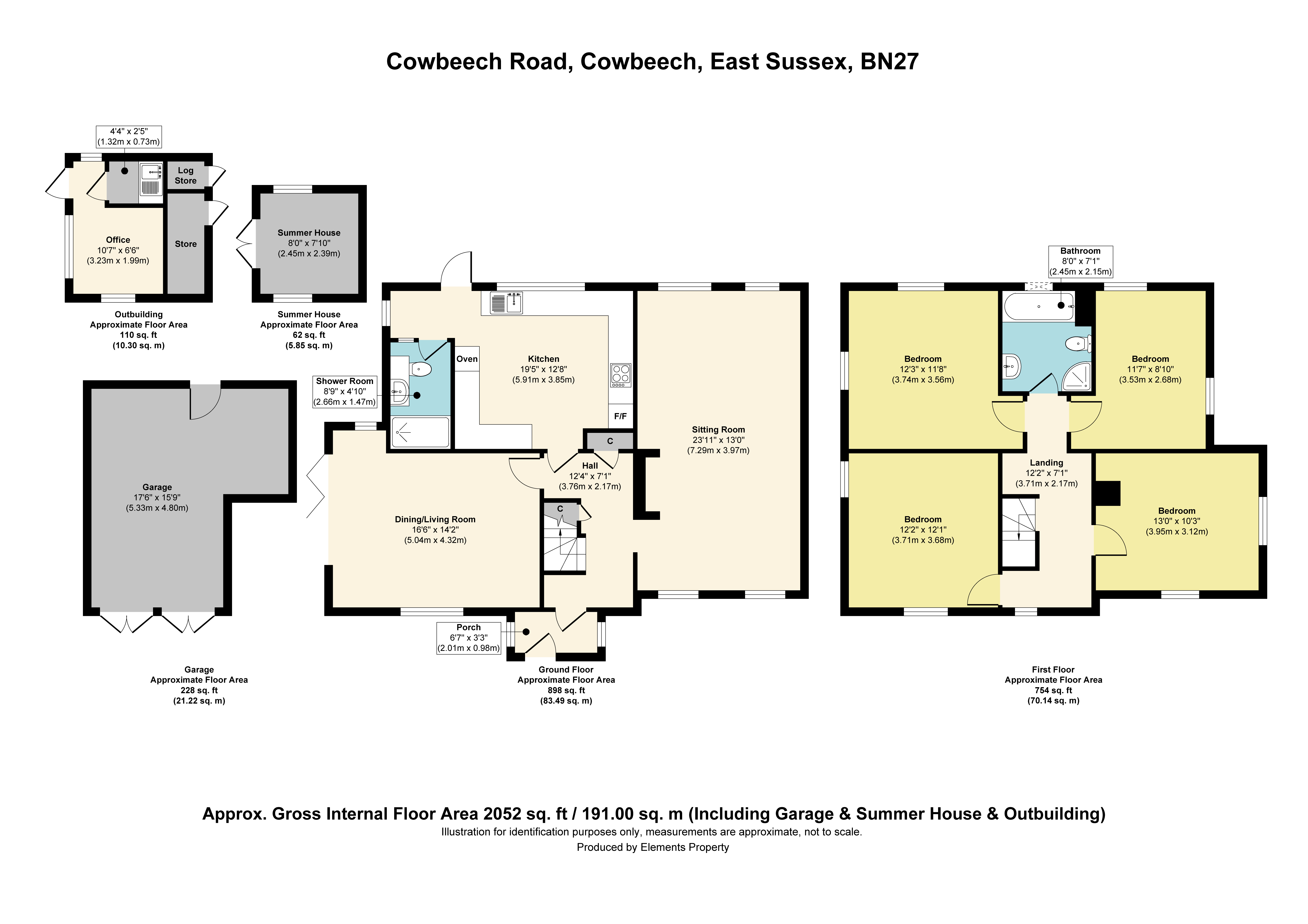 OFFICE STUDIO: A small detached brick building between the garage and the main house containing an office/studio complete with power, lighting & water, and a garden store room and woodstore.