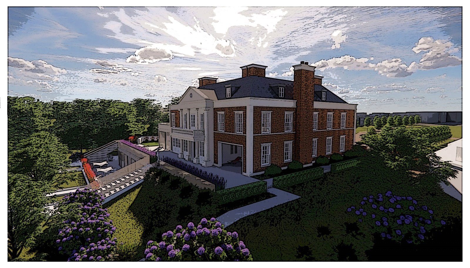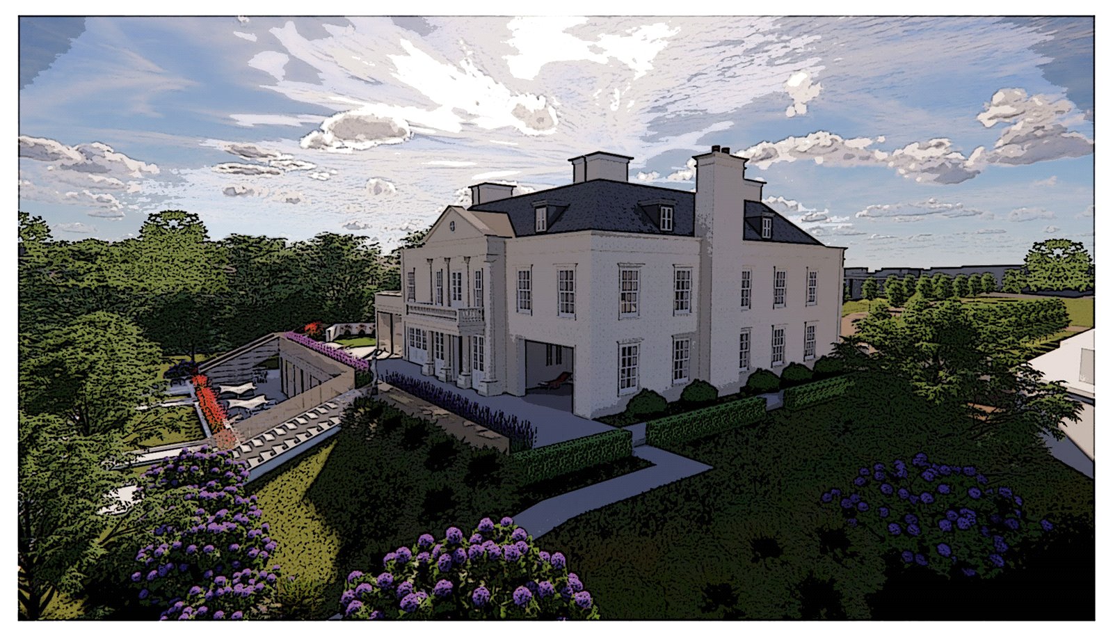 There is probably no better positioned bespoke luxury building plot available with all these incredible attributes granted already within in its current planning designs, as is with this stunning neo Georgian circa 19,000 square foot Georgian influenced residence being offered for sale by Neville and Neville.
