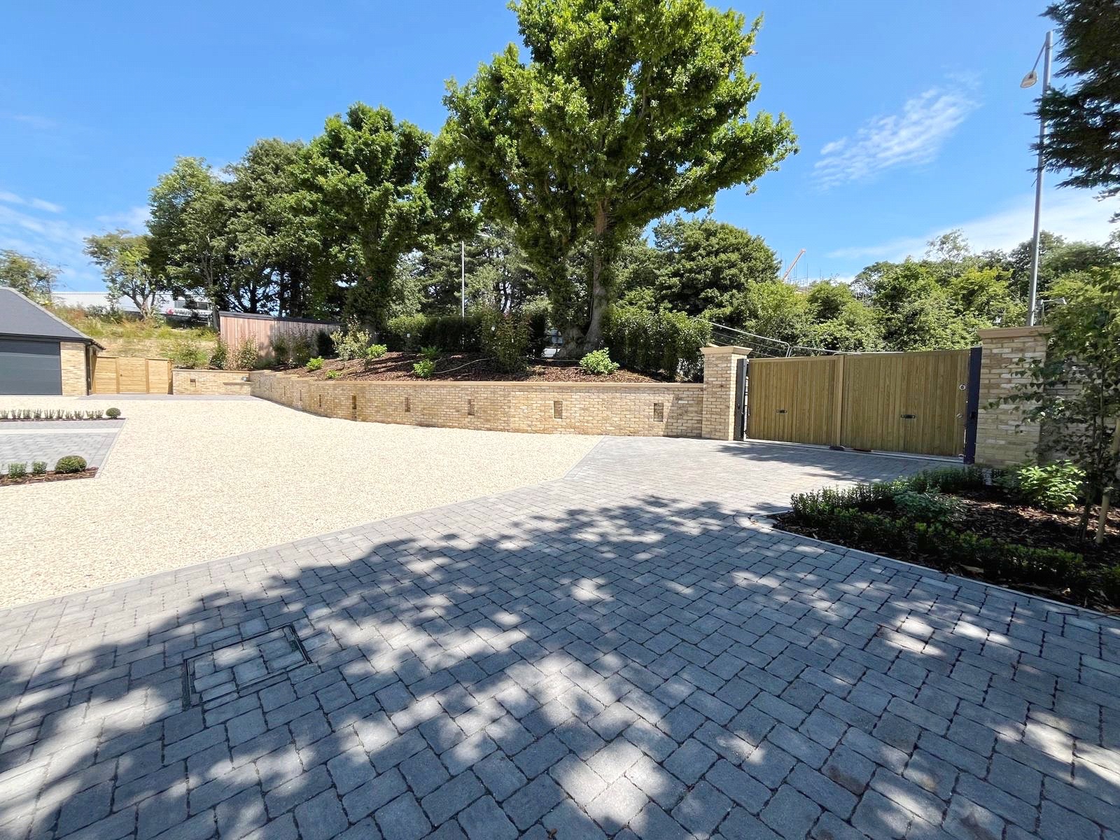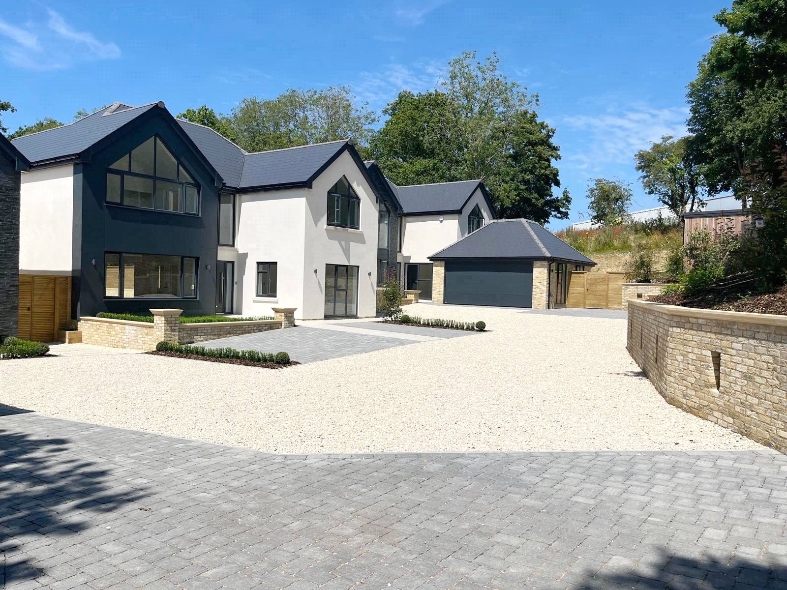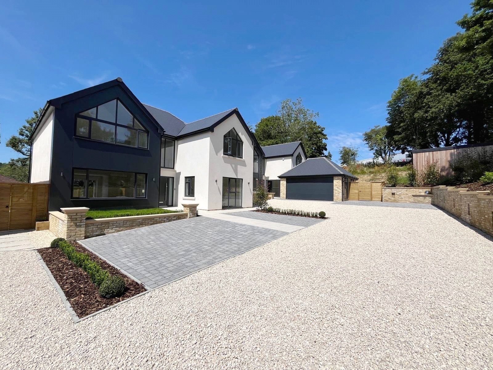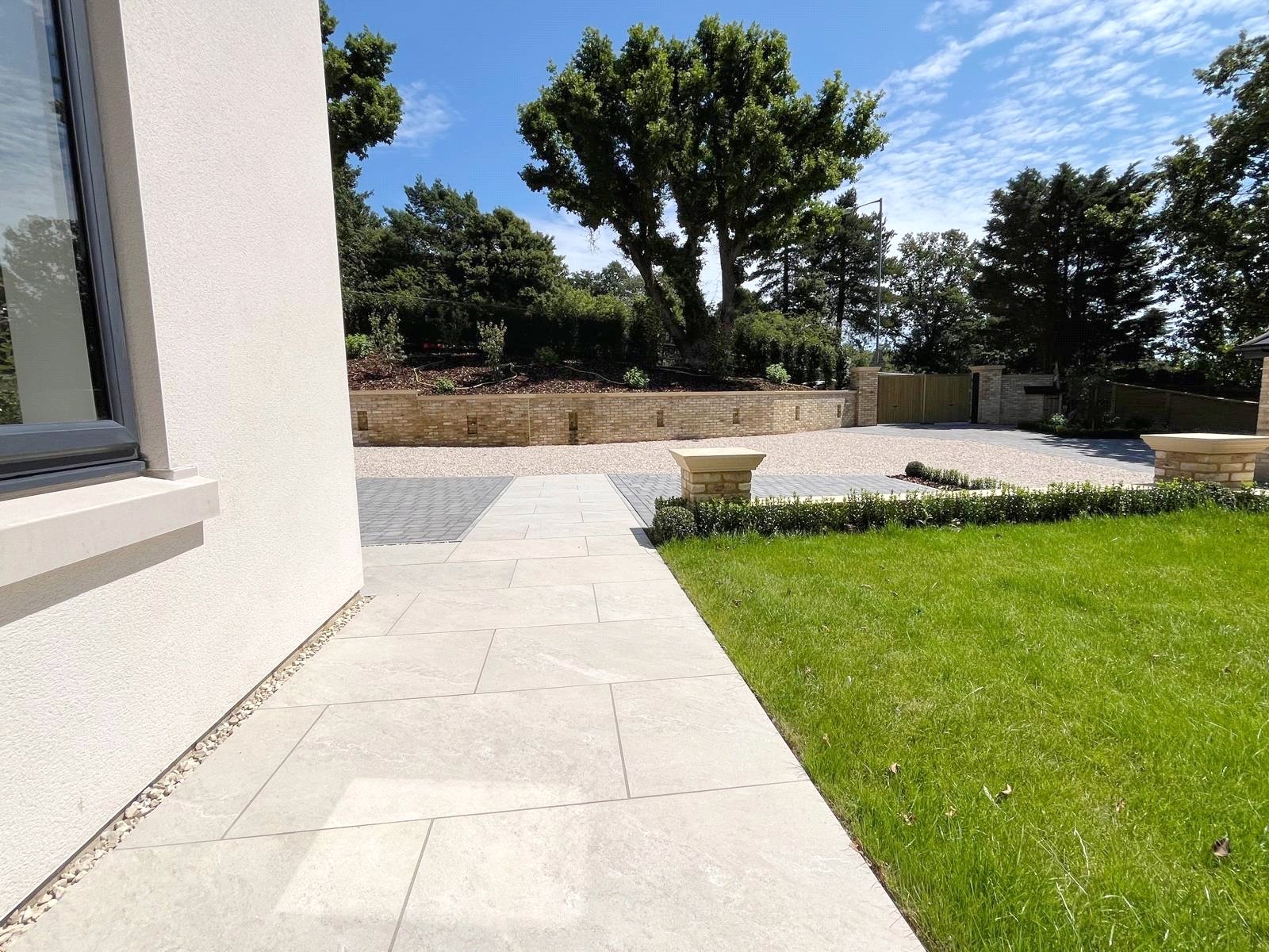 OUTSIDE: The property has the benefit of both front and rear beautifully designed landscaped gardens, as well as an attractive grey brick paved driveway that provides parking for a number of cars.