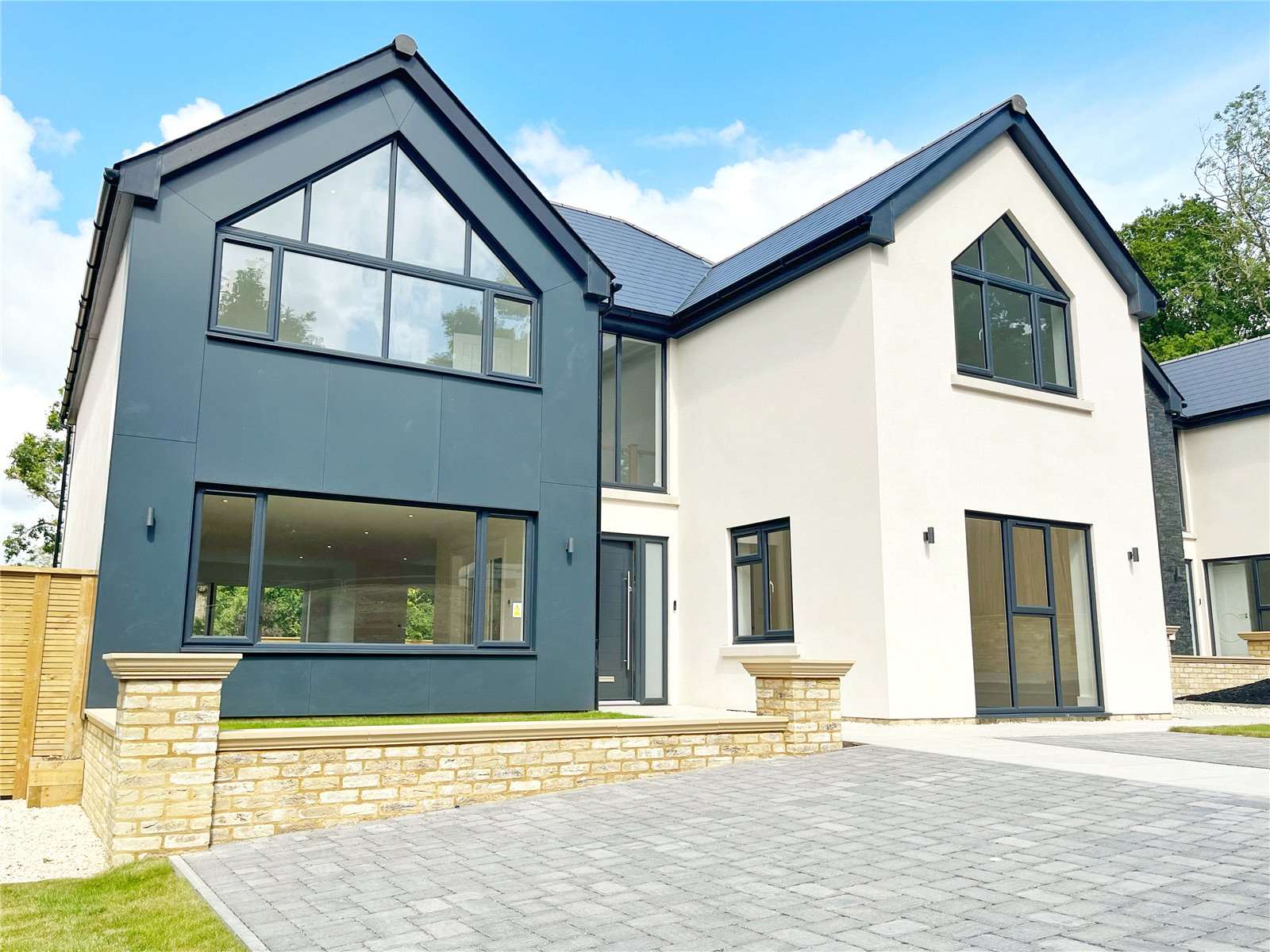 DESCRIPTION: A very rare chance to purchase the last remaining luxury architectural bespoke residence of just three houses, that form this highly desirable select private electric entry security gated development. Plot 2 being the middle of the three properties which extends over two floors to approximately 2,151 square feet. Internally, it is stunningly presented to a high standard of ultra-modern sophisticated styling throughout, including vaulted ceilings, Karndean herringbone oak styled floors, feature doors, feature staircase, a fabulous galleried landing, a wonderful Juliette balcony to bedroom one, bi-folding double glazed doors, concealed lighting and more besides.