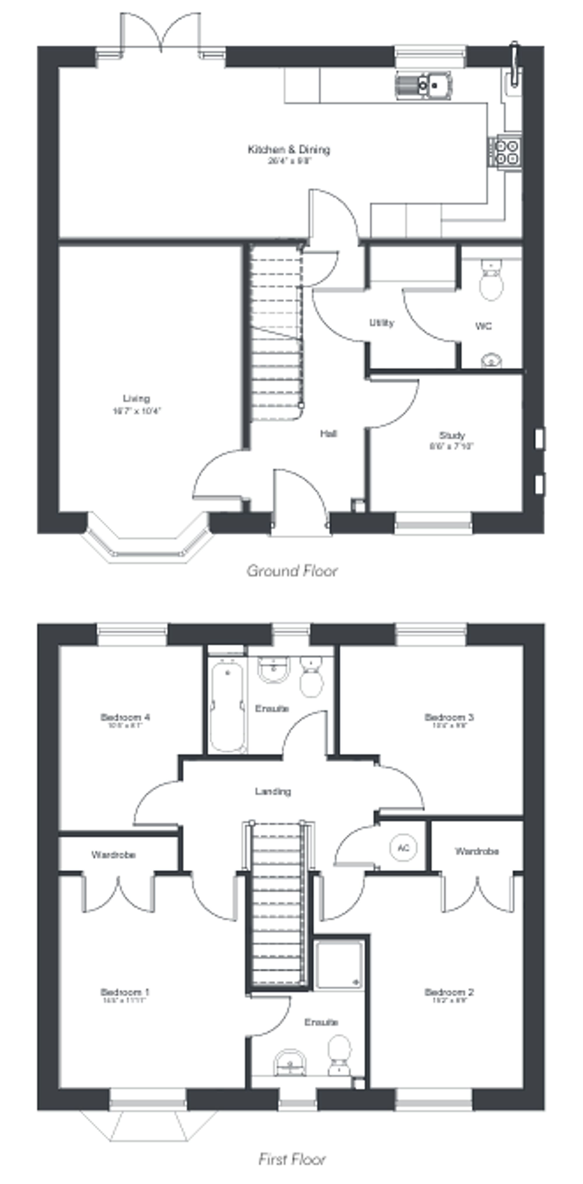- Four well proportioned bedrooms on the first floor having both an en-suite shower room and family bathroom