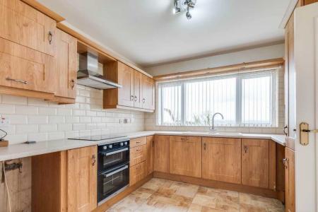 Fitted kitchen with a range of high & low level units, integrated hob, double oven & grill, dishwasher, plumbed for washing machine, s.s. sink unit, s.s. extractor fan hood, tiled floor & splash back, glazed door to Sun Room.