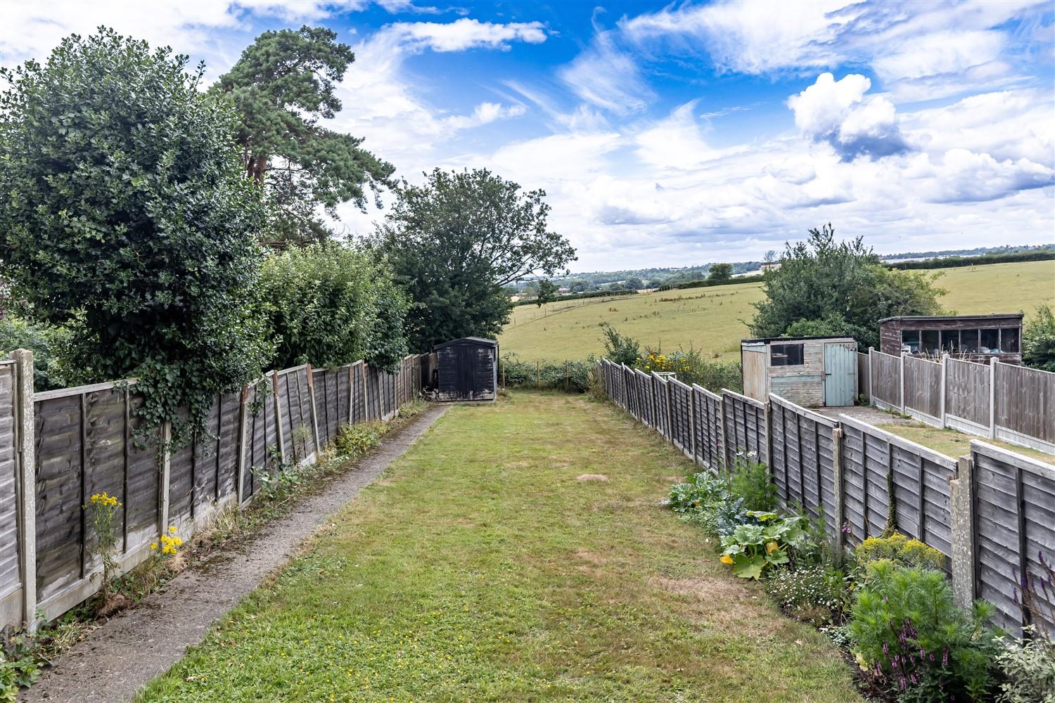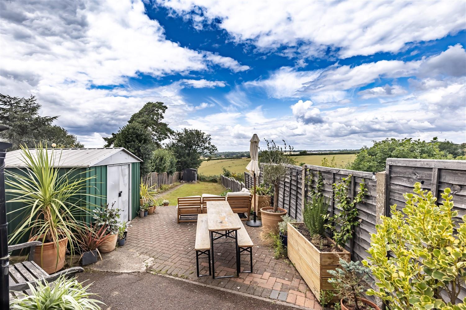 Externally, the front of the property boasts a lovely garden that allows for off-street parking, with a side gate leading to the rear garden. The rear garden features a raised patio area, a secure motorbike store, a wooden shed, and a spacious lawn measuring approximately 130 feet, offering stunning views over the open countryside.