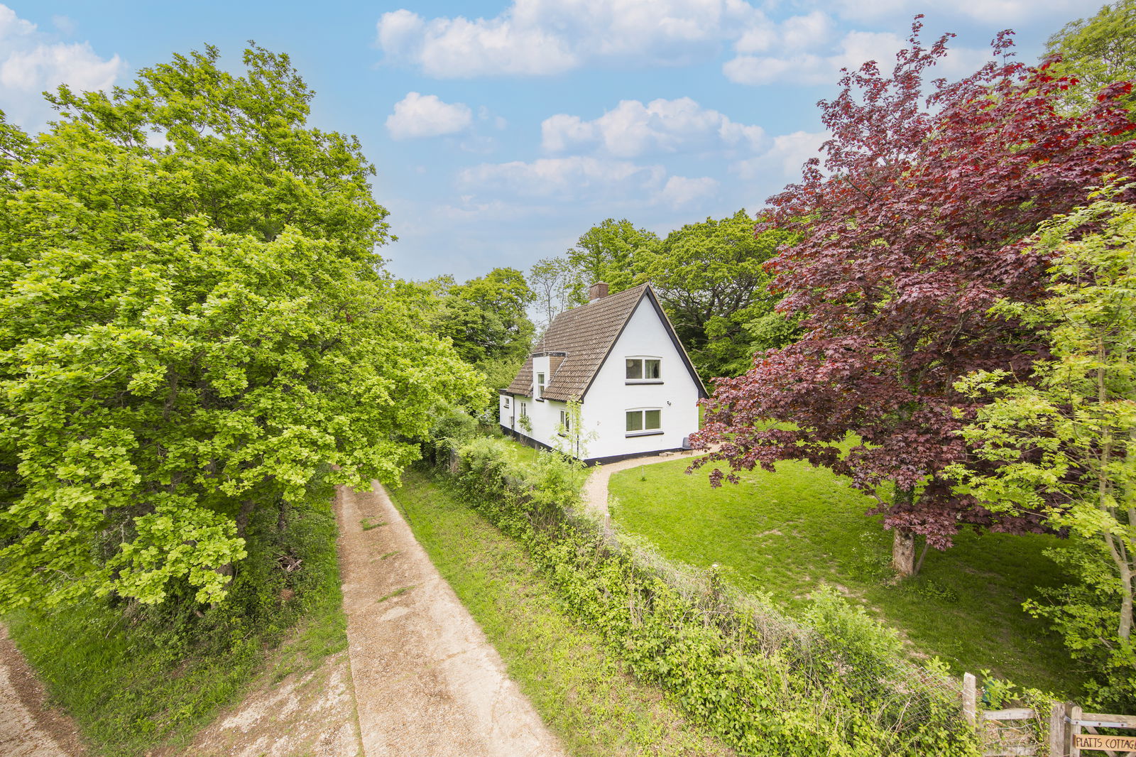 OUTSIDE: The property sites in a bold plot extending to 0.24 acres with a driveway to the front providing off-road parking and a gated access to the property. Areas of garden to all sides including areas of lawn with wonderful countryside views over fields and trees in the distance.