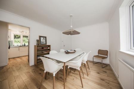 DINING ROOM: uPVC double glazed window to side. Exposed painted brickwork. Timber effect flooring. Radiator.