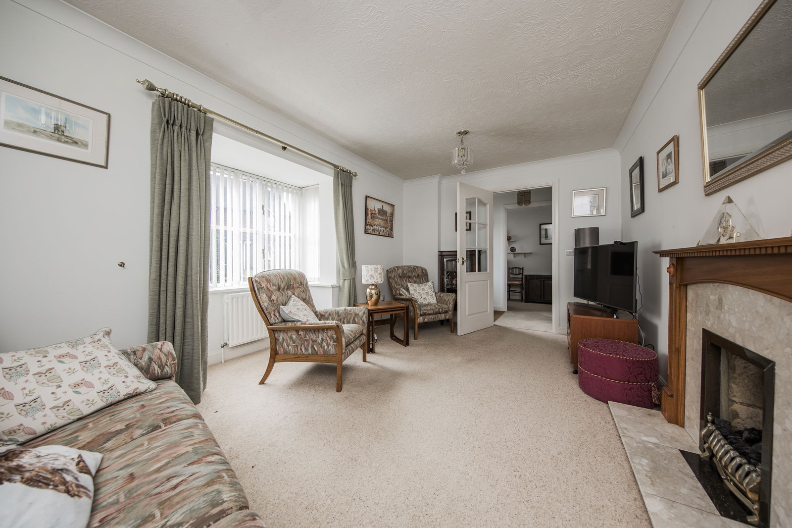 Dual aspect with double glazed windows. Feature fireplace with gas coal effect fire. Coved ceiling. Radiator.