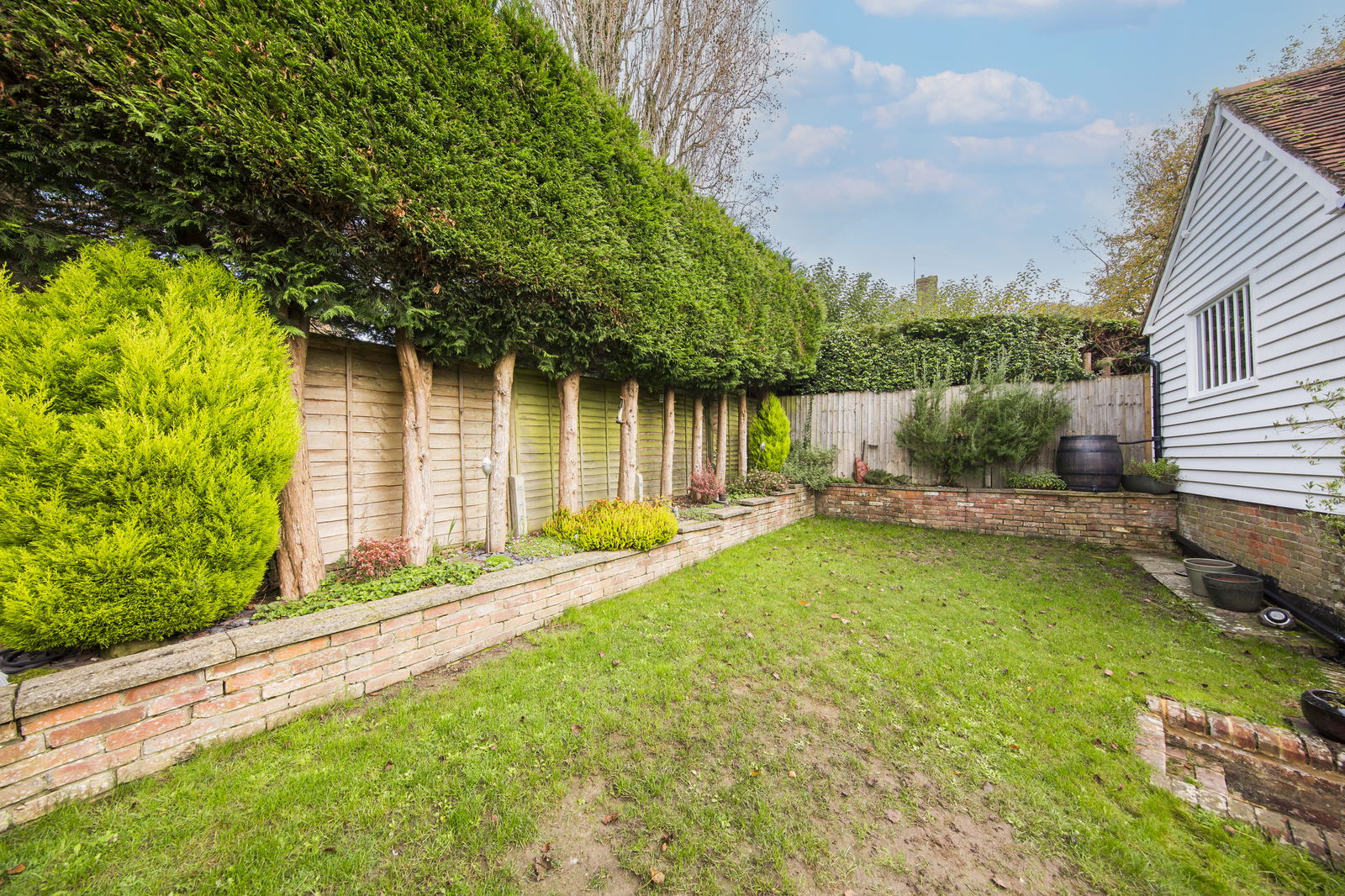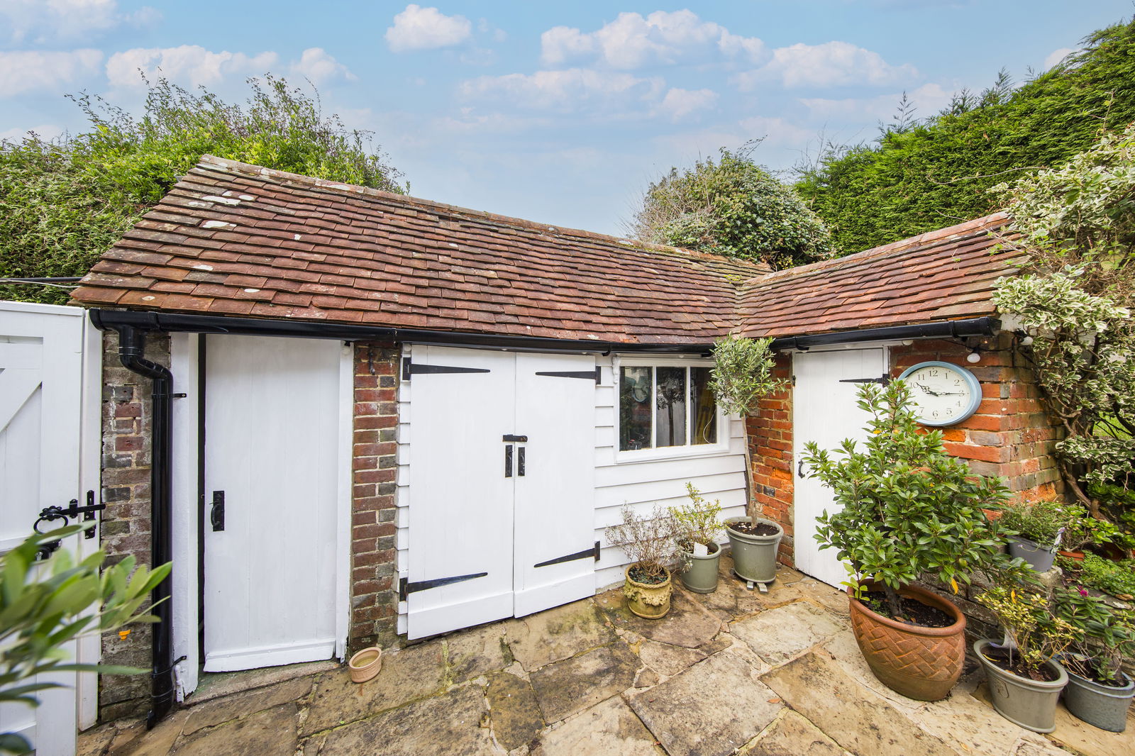 OUTSIDE: Private enclosed garden to the rear with patio area, lawn and shrub borders. Brick built outbuilding comprising storage room/workshop with power and light. Log store and outdoor WC. Side gate. Driveway to the front providing parking for two cars.