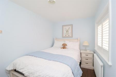 Bedroom Three - Bedroom Three, added as part of the recent extension, is a well-proportioned double bedroom that continues the home's traditional styling. It features a bespoke wooden sash window with internal shutters, a traditional-style radiator, and practical laminate flooring. This thoughtfully designed space blends seamlessly with the character of the original cottage.