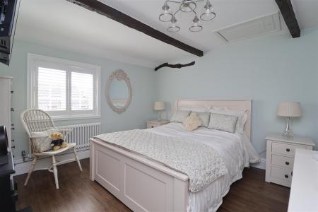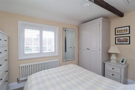 Bedroom Two - Bedroom Two mirrors the charm of Bedroom One, with a wooden sash window to the front elevation, traditional shutters, exposed ceiling beams, and a classic-style radiator. In addition to these features, it boasts the original fireplace, adding a distinctive period focal point.