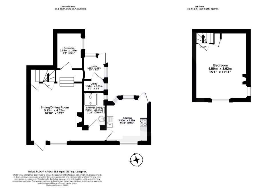 Bedroom 2: 8'4" x 6'1" (2.54m x 1.85m)