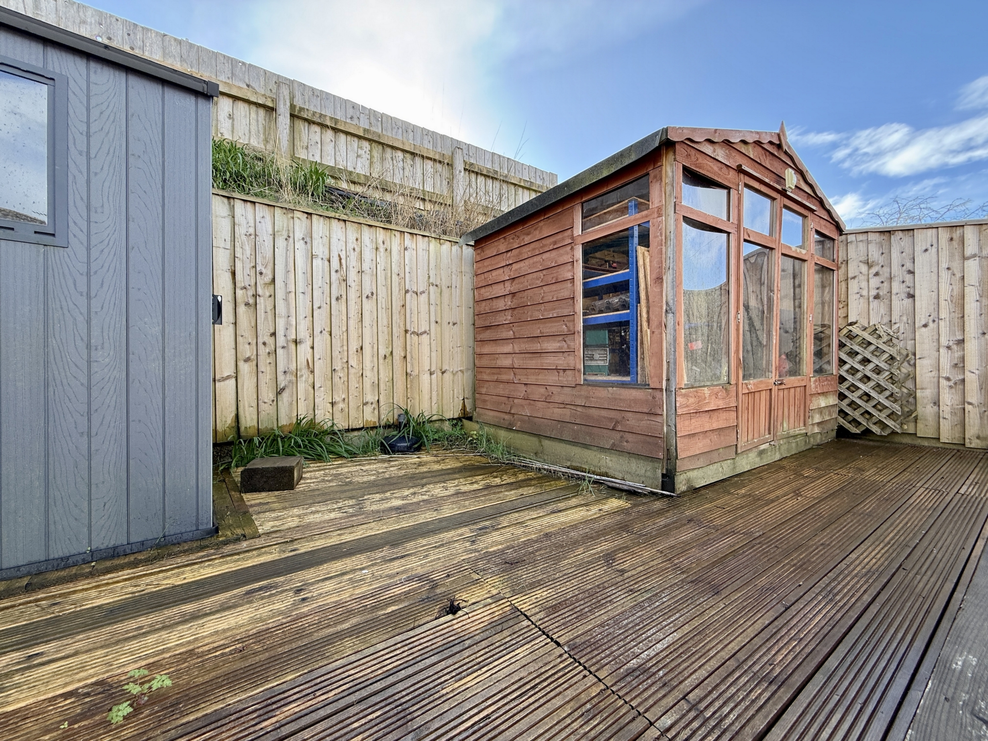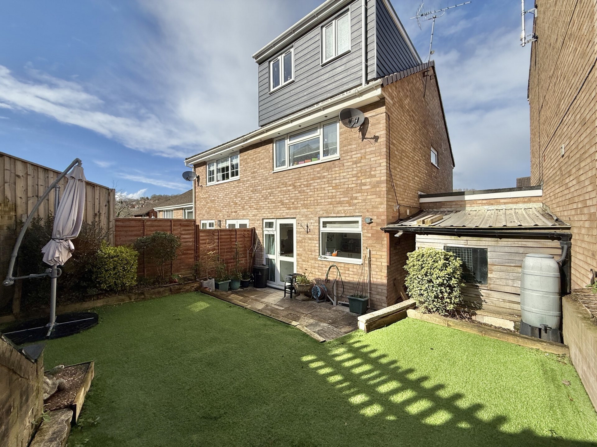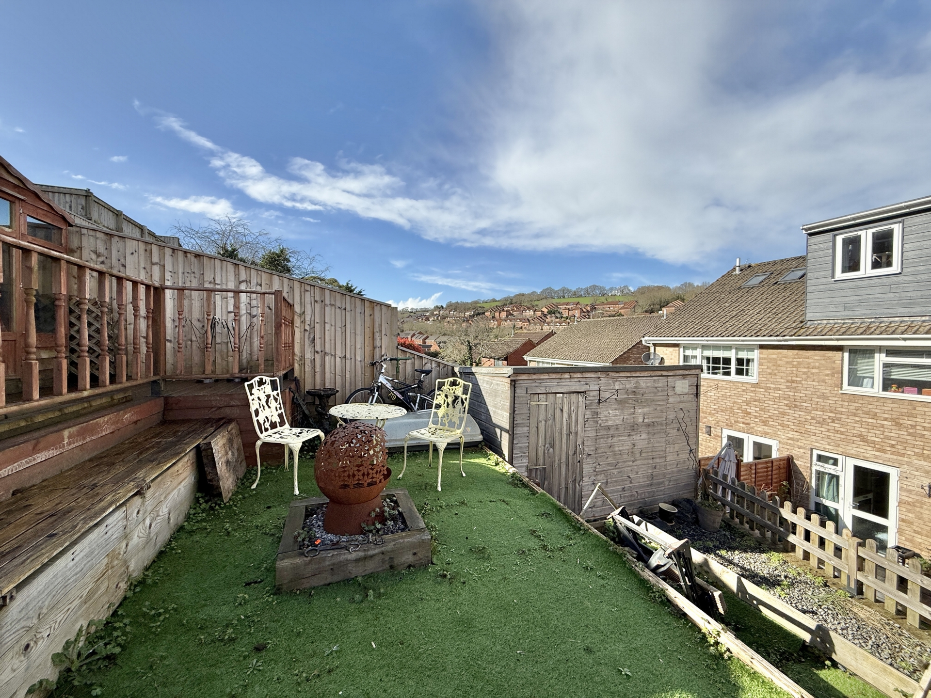 OUTSIDE: To the front of the property is a driveway providing off road parking leading to the garage and front door. To the rear is a tiered garden laid to paved patio, artificial grass and decked patio with handy timber storage shed and summer house.