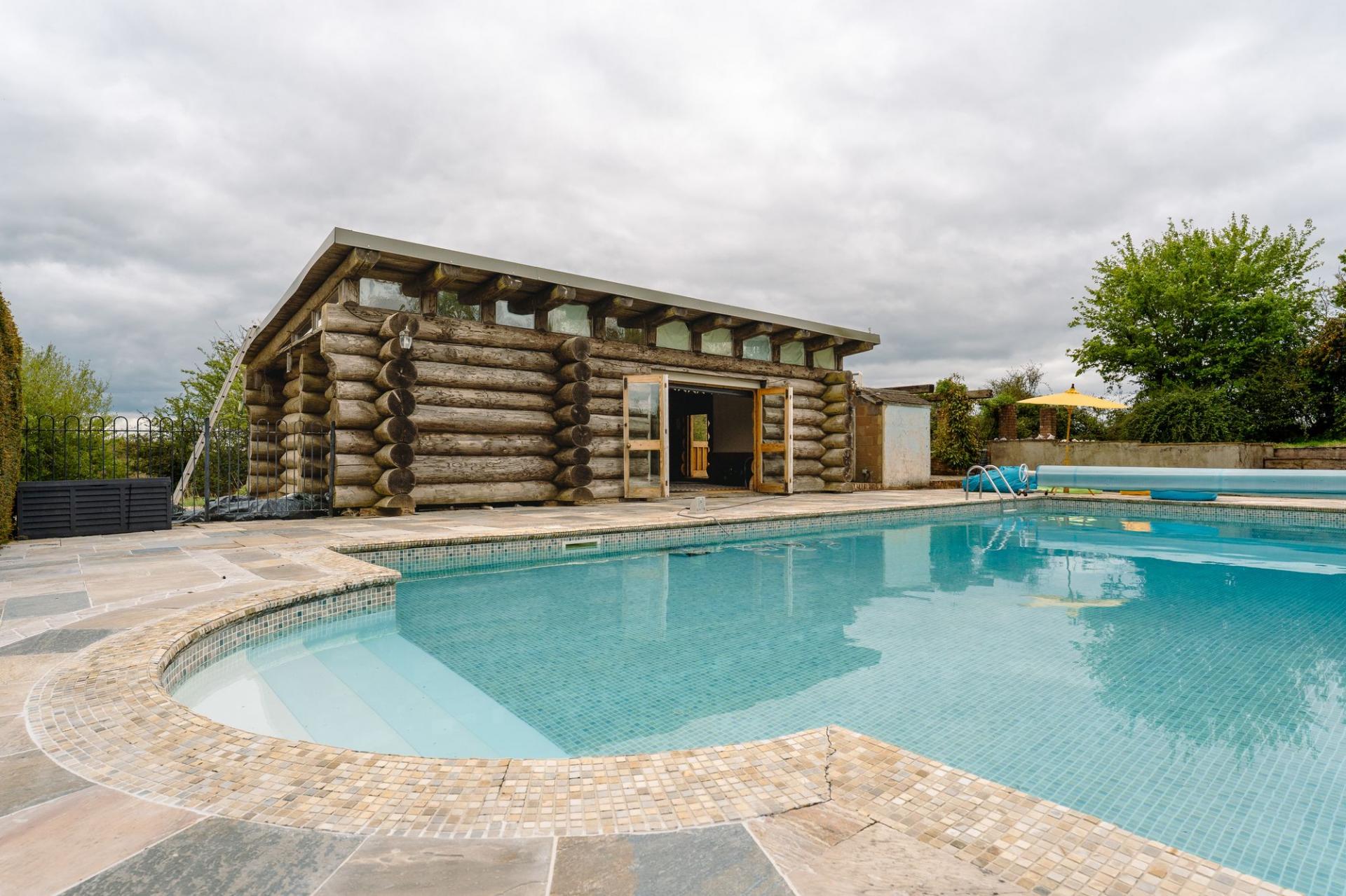 - Swimming pool with log cabin including sauna