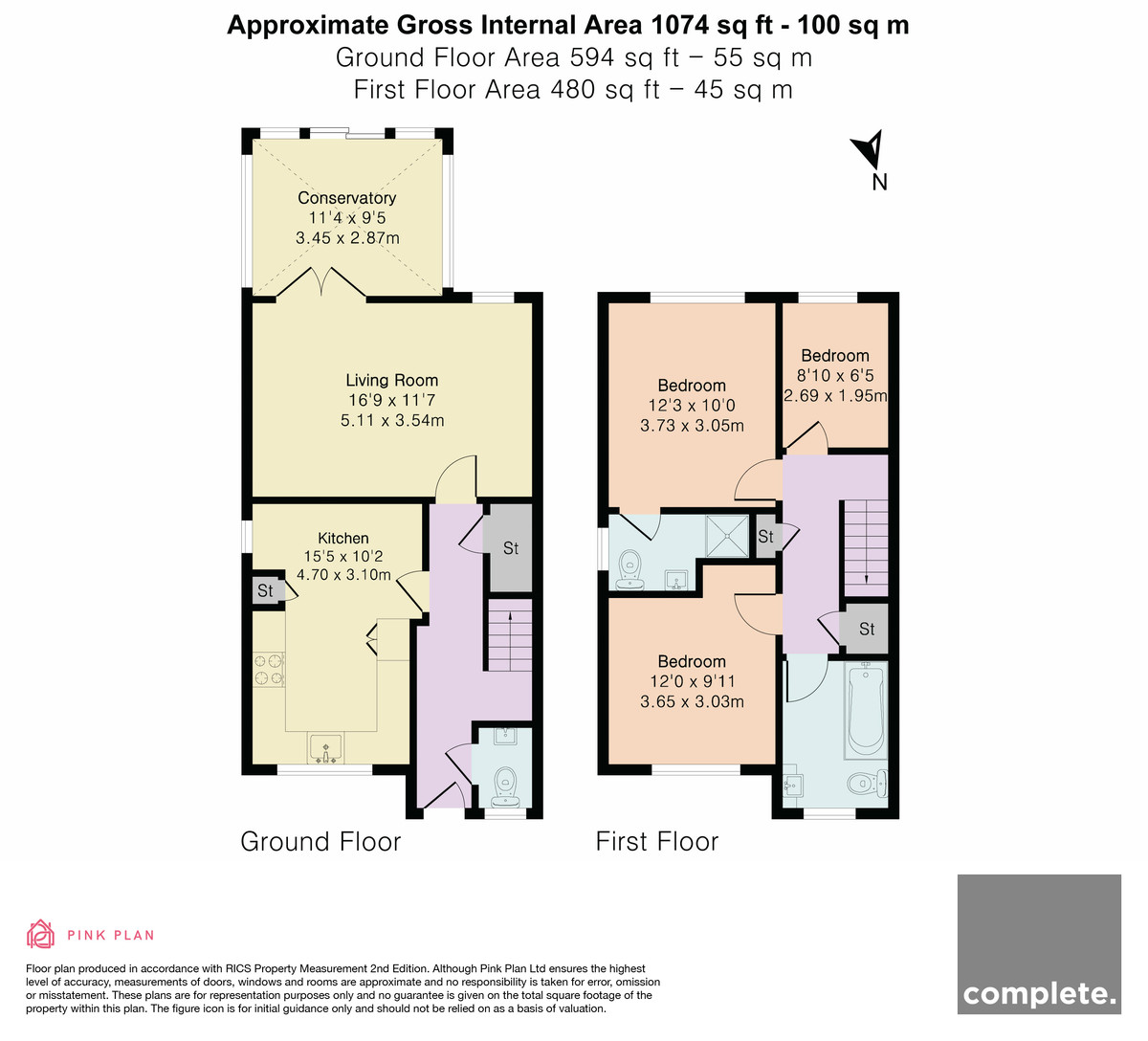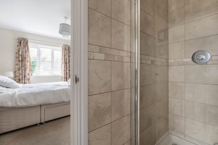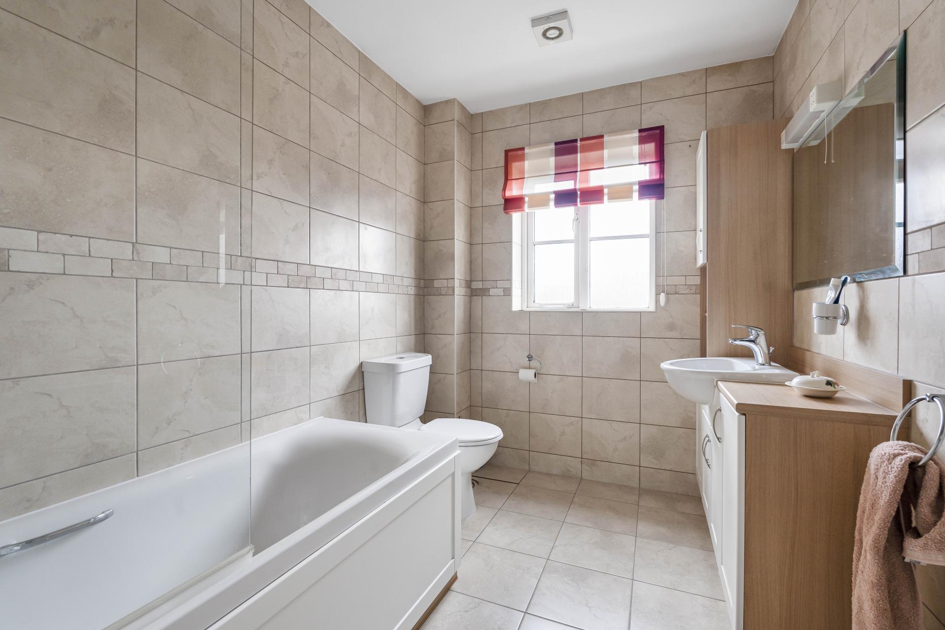 The first floor provides well-planned bedroom accommodation, ideal for families or those requiring flexible space. The main bedroom is a generous double room benefitting from plenty of natural light and the convenience of an en-suite shower room. There are two further bedrooms, including an additional well-proportioned double and a good-sized single room, which could also serve as a home office or nursery. The accommodation is completed by a spacious family bathroom, fitted with a modern white suite and attractive tiling throughout.