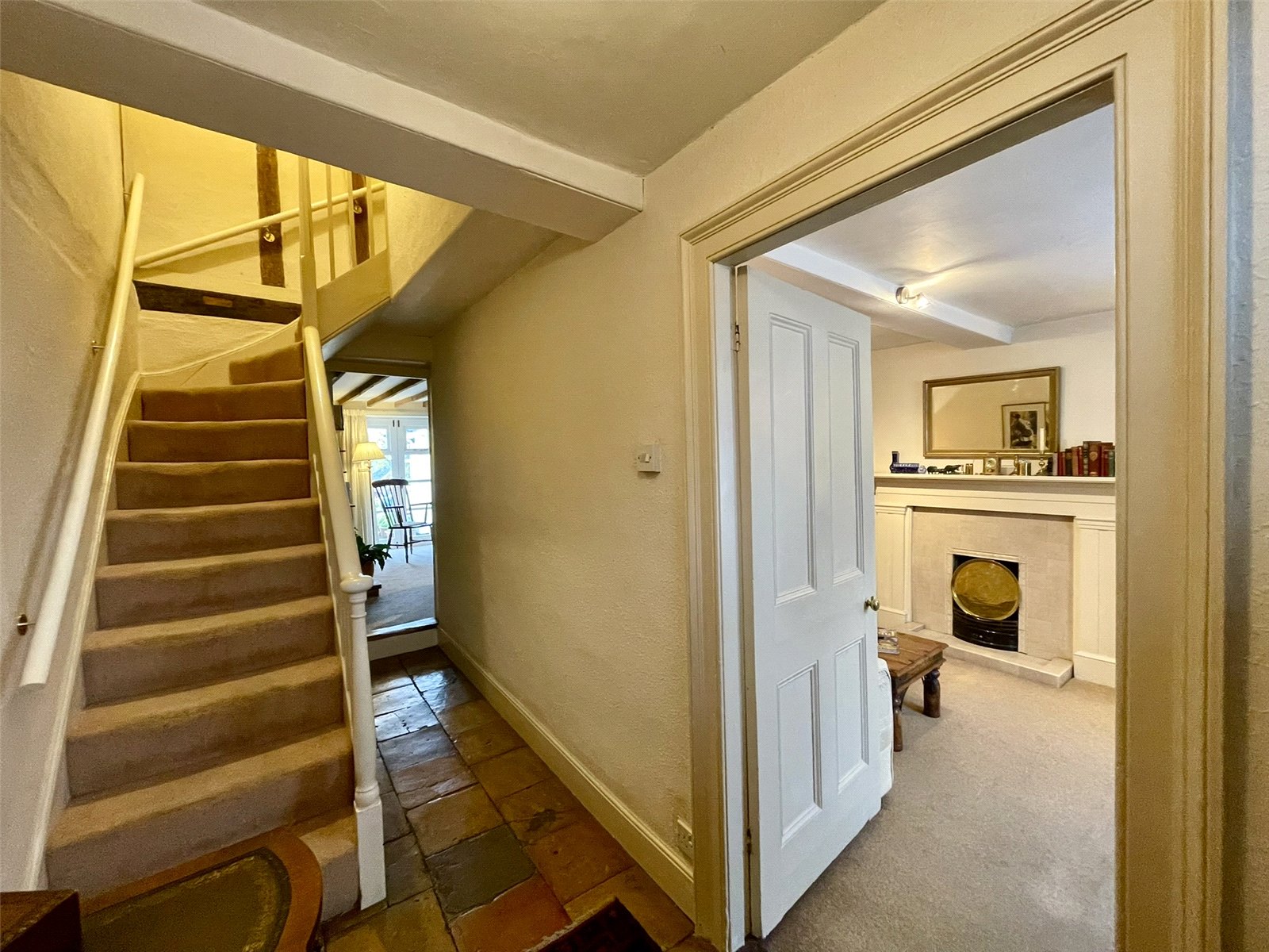 36 Castle Street is the central section of three properties evolved from the early 17th Century timber frame evident within each. This central section is unique however having an impressive hallway laid with pamment tiles and Georgian design influences to the staircase rising to the first floor. Furthermore, the layout comprises not only two distinct reception rooms but also a kitchen beyond, a cellar below and a useable attic space at the very top, accessed via an early flight of stairs. The property is also fortunate in having the central section of three parts to a period outbuilding which provides this house with a garage space and room for workshop activities. The current owners have enjoyed their time in this lovely house since 1984. Improvements, repairs and renovations have been carried out along the way including the installation of gas fired radiator heating.
