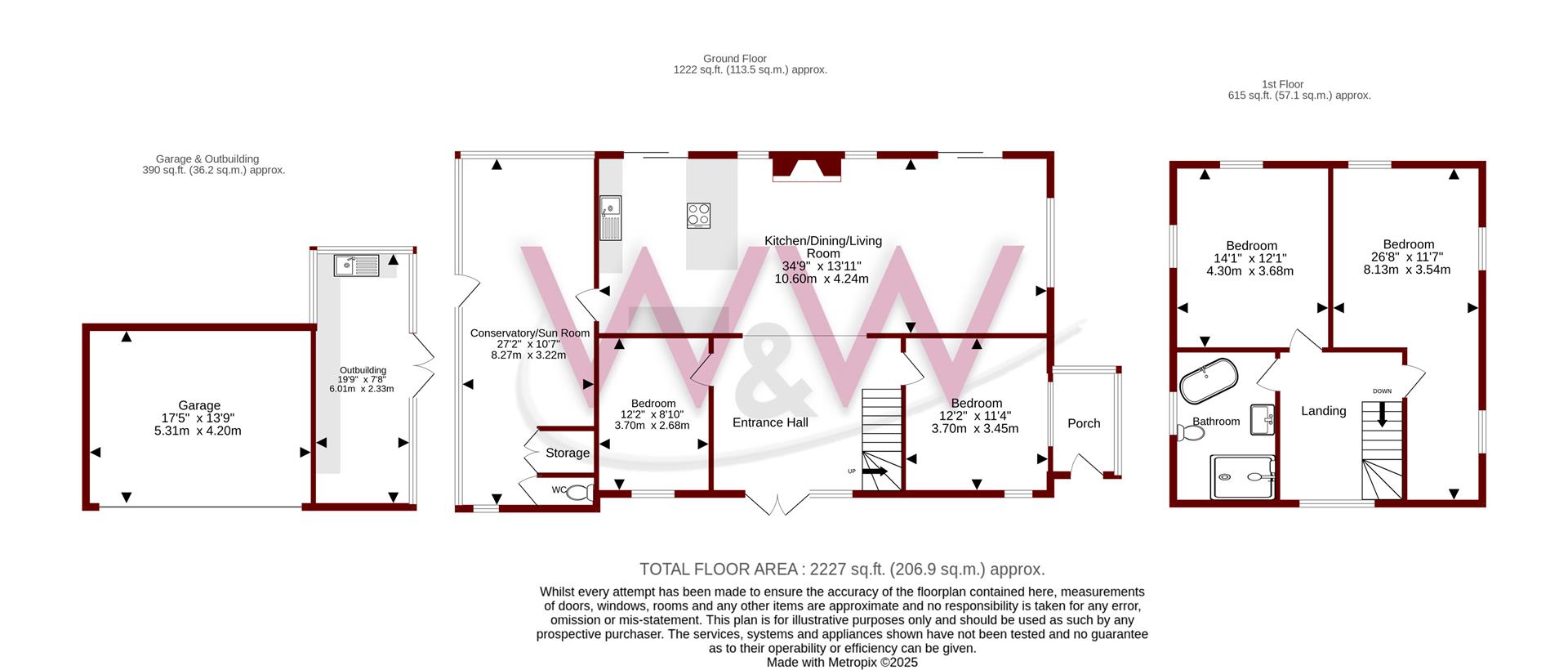 27'2ft Conservatory/sun room with built in storage cupboard & cloakroom